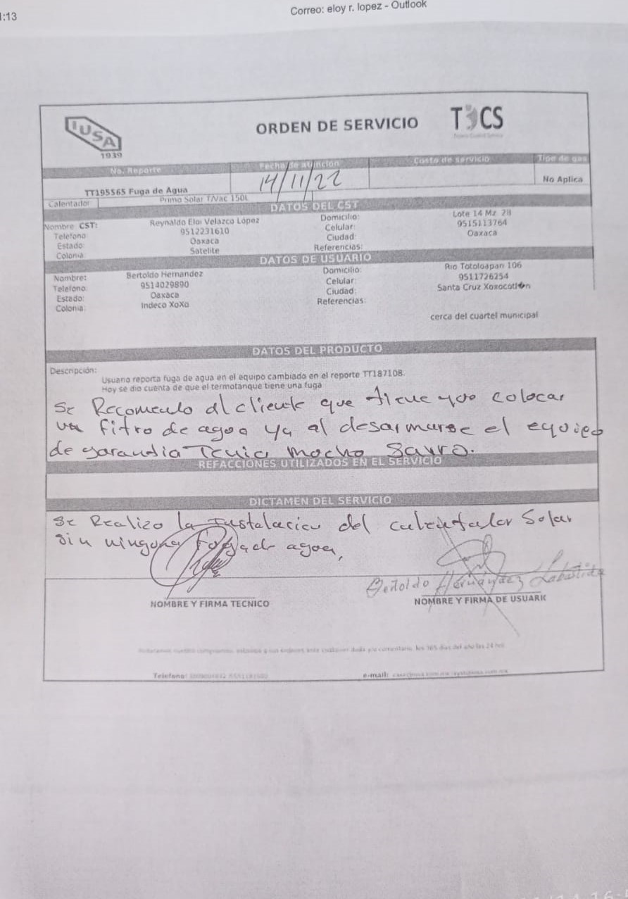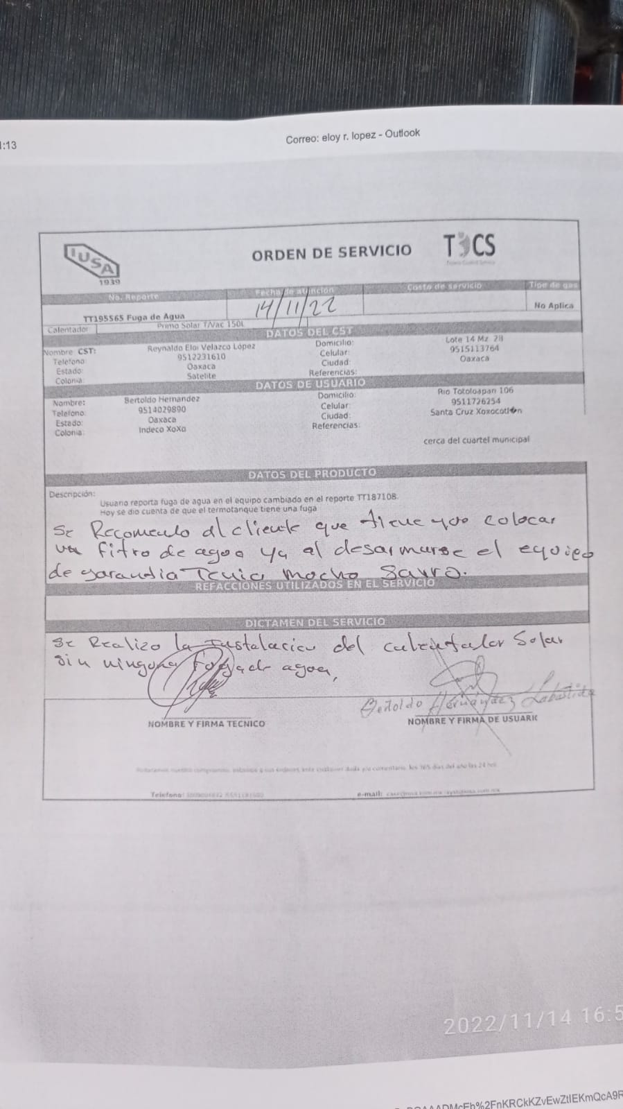 | Técnico | Reynaldo Eloi Velazco Lopez | Fecha Asistencia | 2022-11-16 18:00:00 | ||||||||||||||||