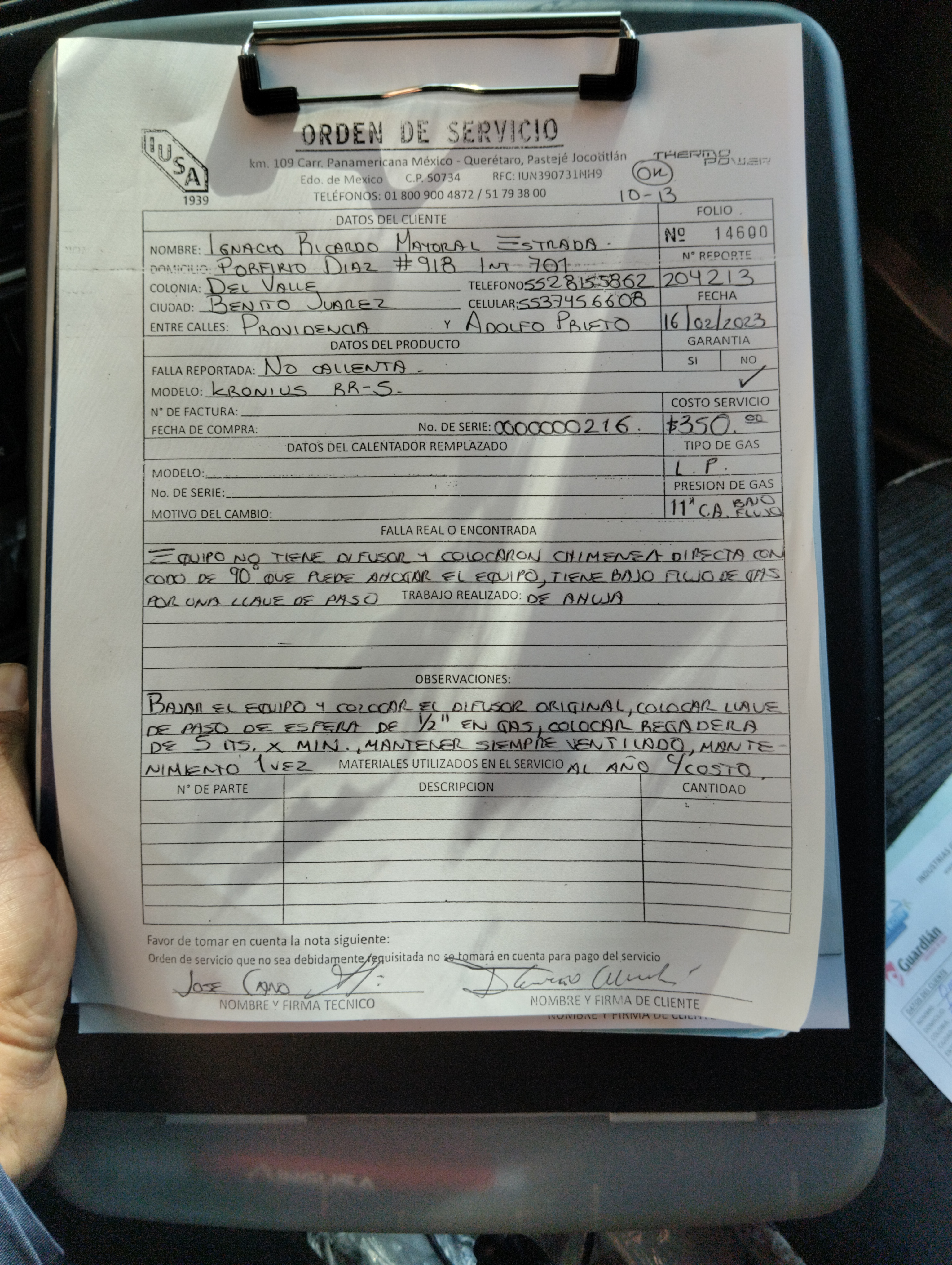 | Refacciones Utilizadas | No Aplica | Tipo de Refacción | No Aplica | ||||||||||||||||