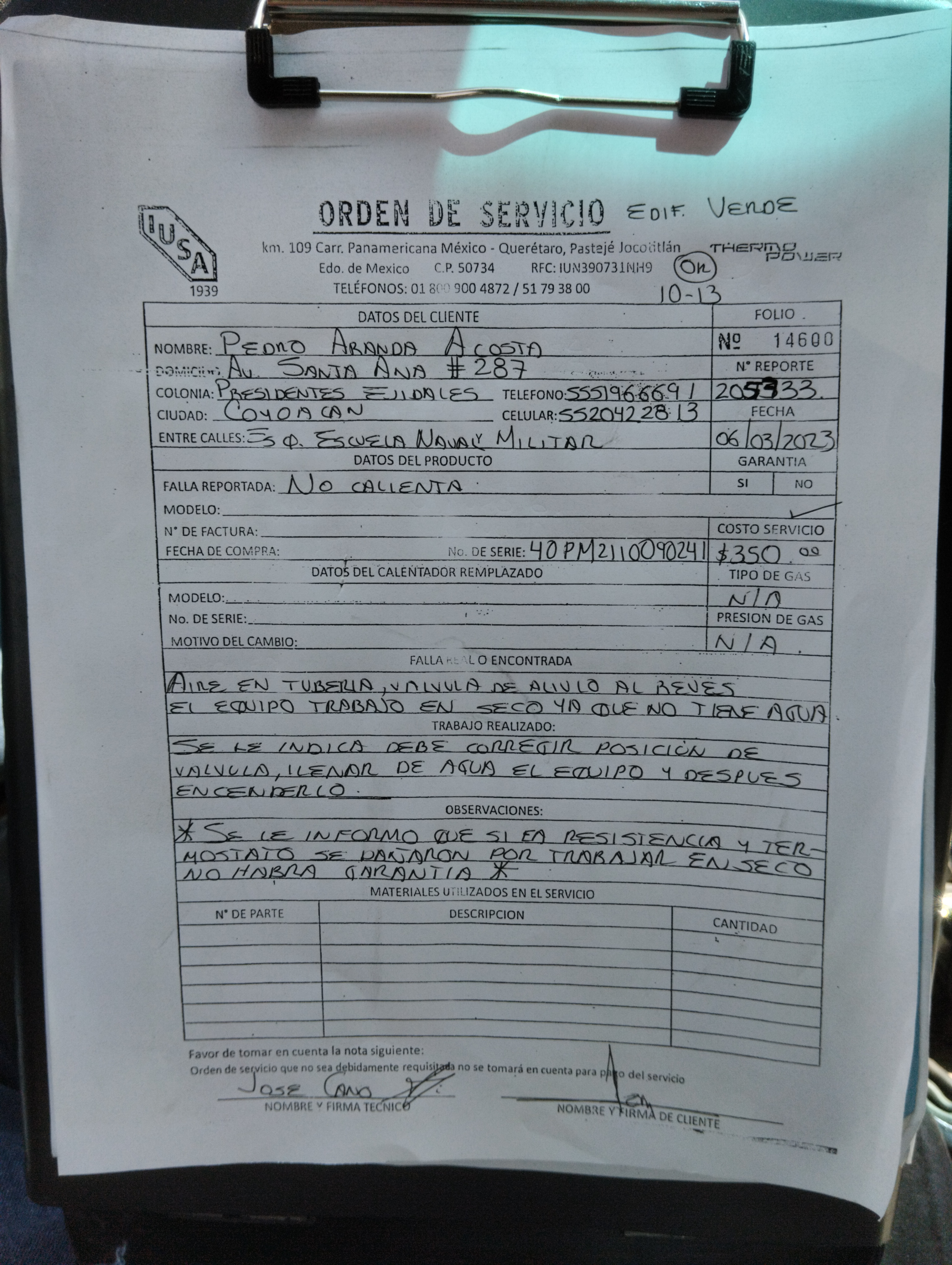 | Técnico | Jose Cano Sanchez | Fecha Asistencia | 2023-03-06 14:50:00 | ||||||||||||||||