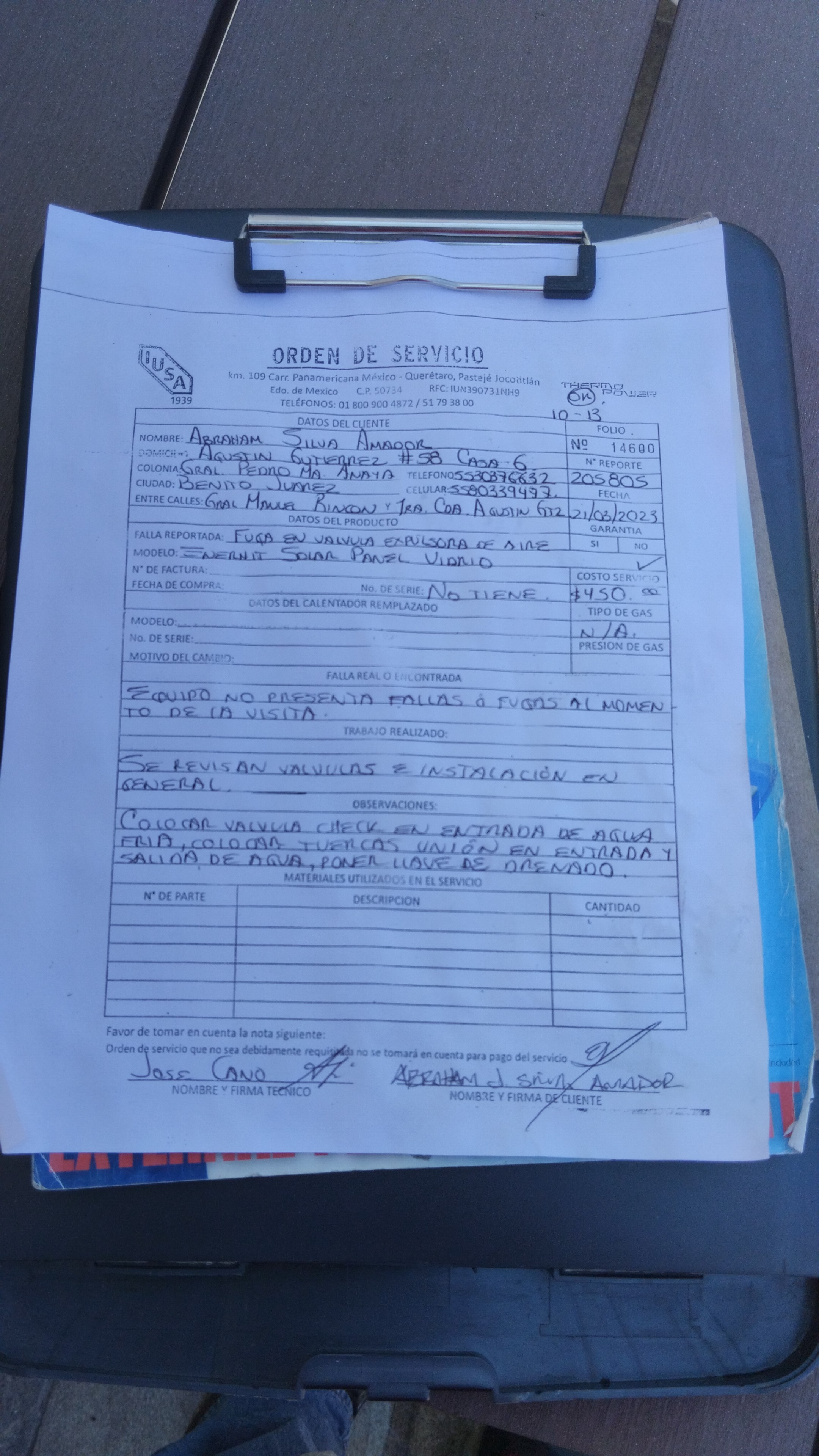 | Técnico | Jose Cano Sanchez | Fecha Asistencia | 2023-03-20 04:30:00 | ||||||||||||||||