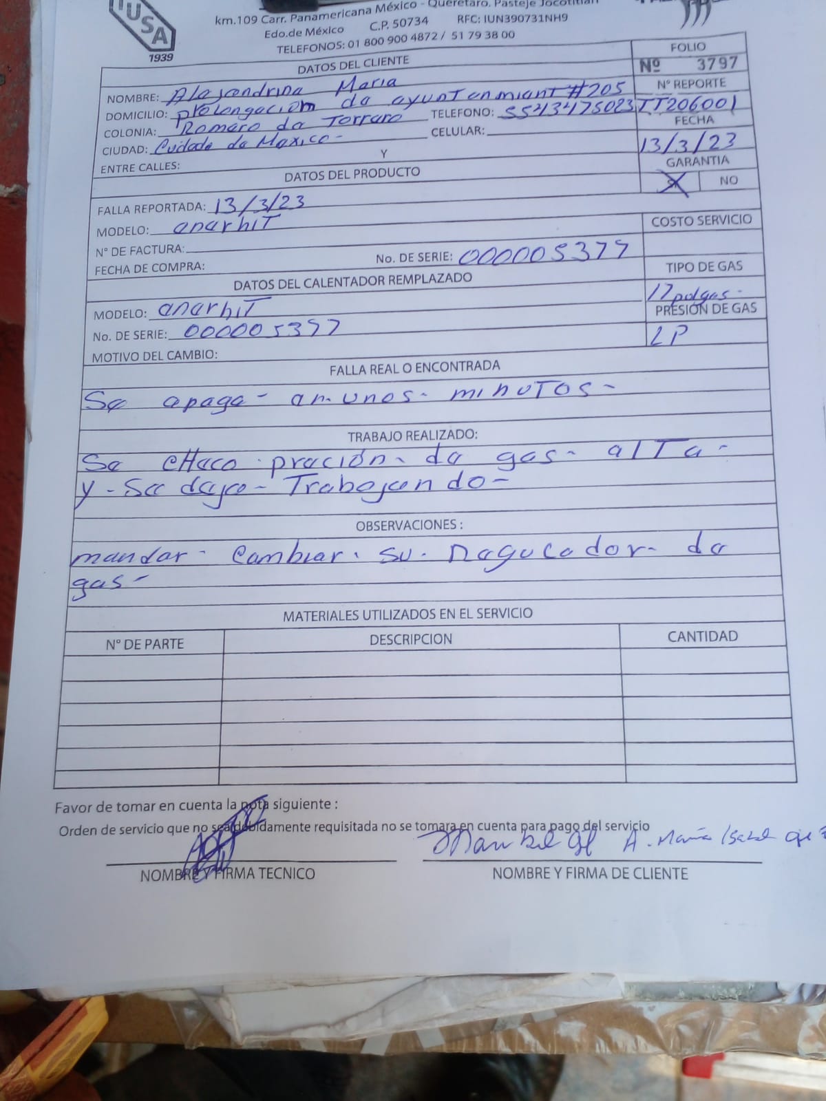 | Orden de Servicio | 206001 | Orden Interna Refacción | 208984 | ||||||||||||||||