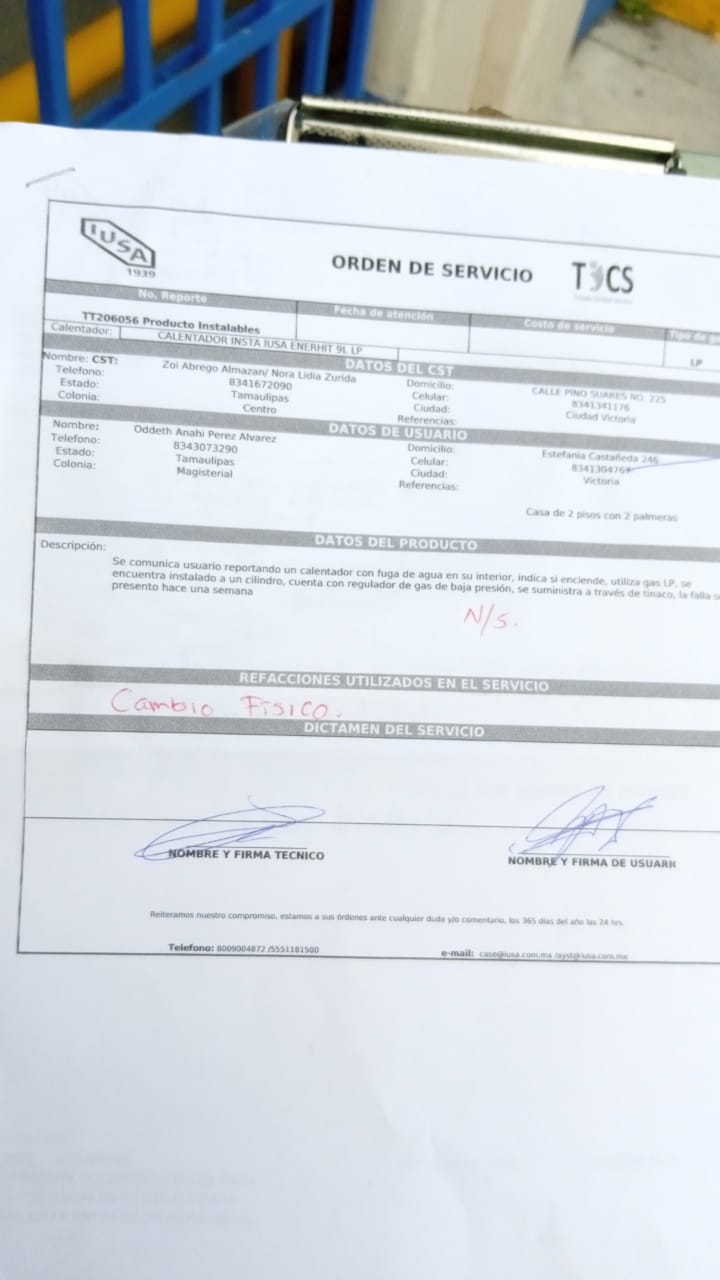 | Refacciones Utilizadas | NO | Tipo de Refacción | N/A | ||||||||||||||||