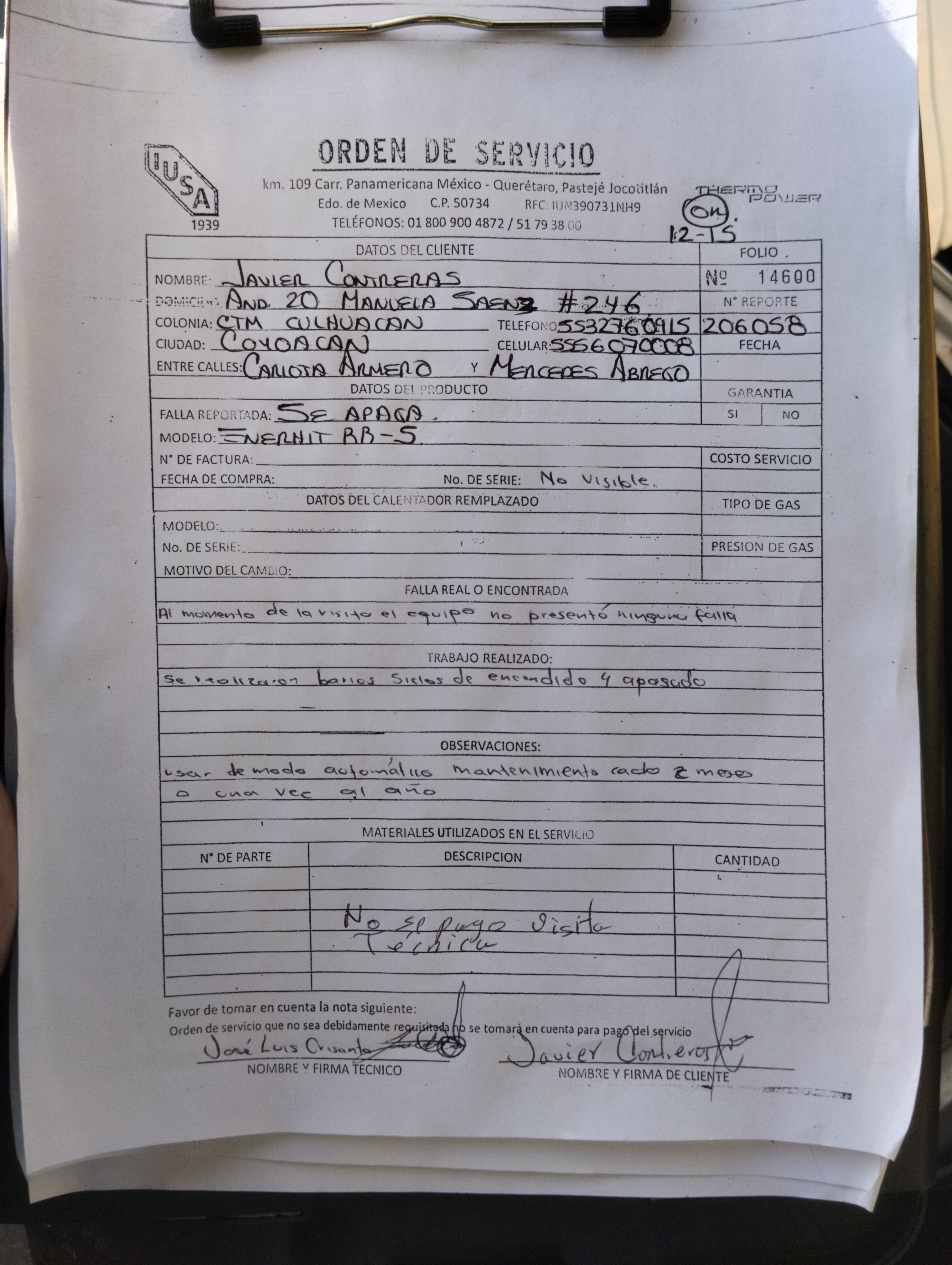 | Orden de Servicio | 206058 | Orden Interna Refacción | |||||||||||||||||