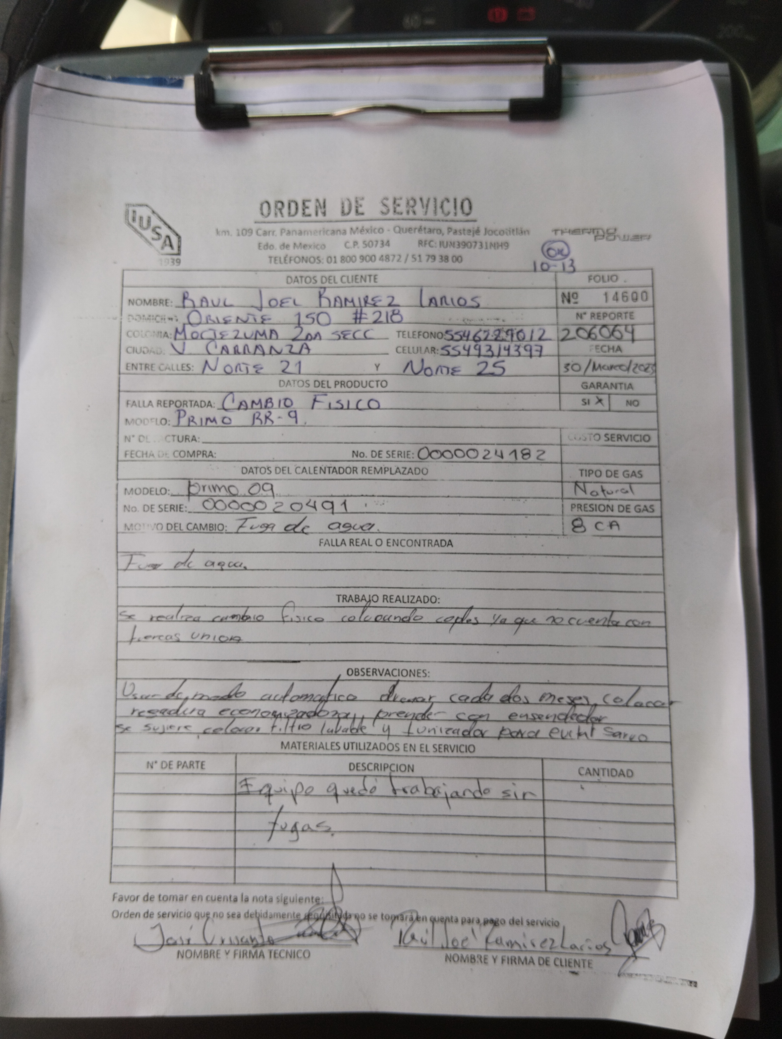 | Orden de Servicio | 206064 | Orden Interna Refacción | 209500 | ||||||||||||||||