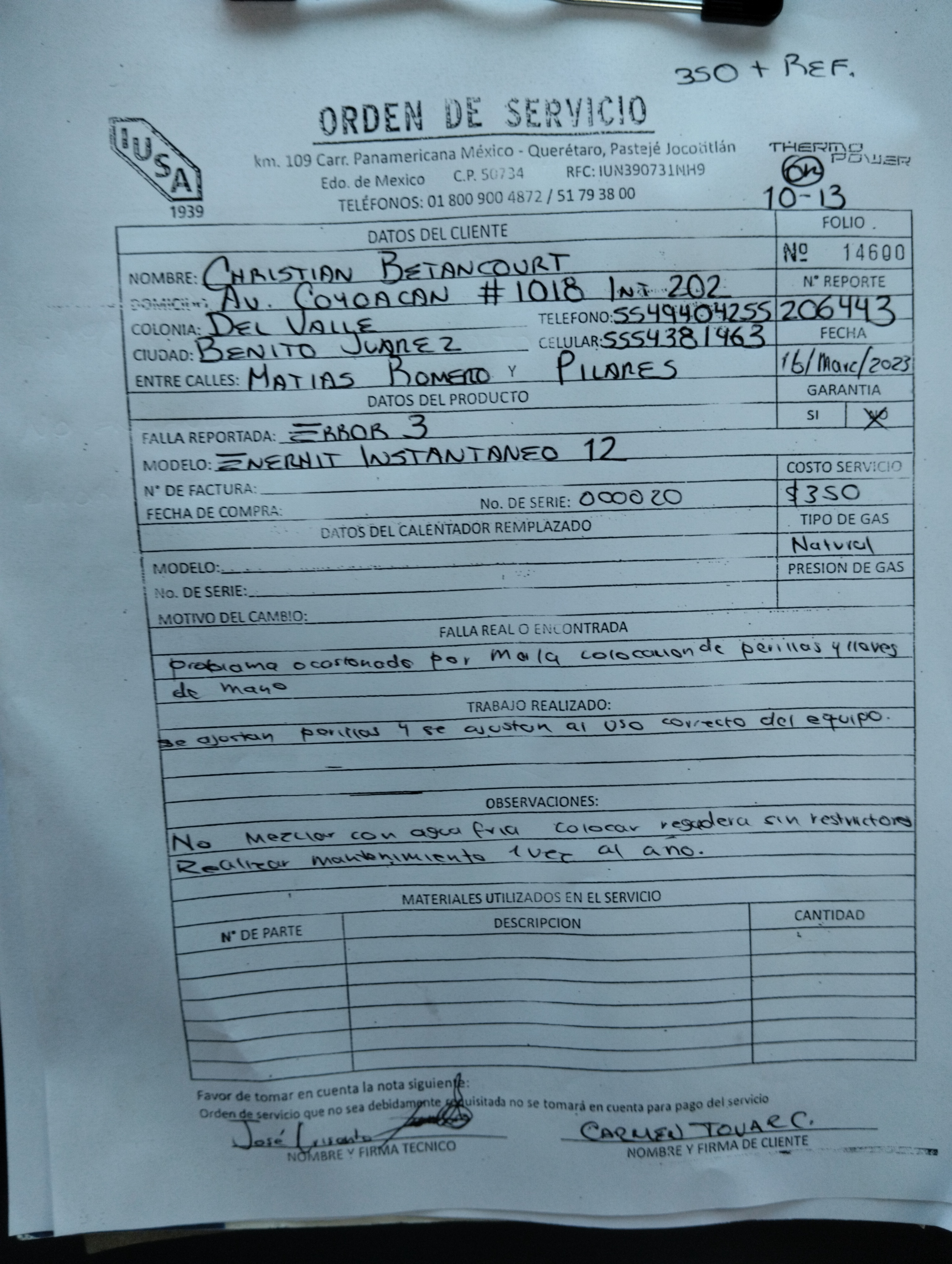| Técnico | Jose Cano Sanchez | Fecha Asistencia | 2023-03-16 18:50:00 | ||||||||||||||||
