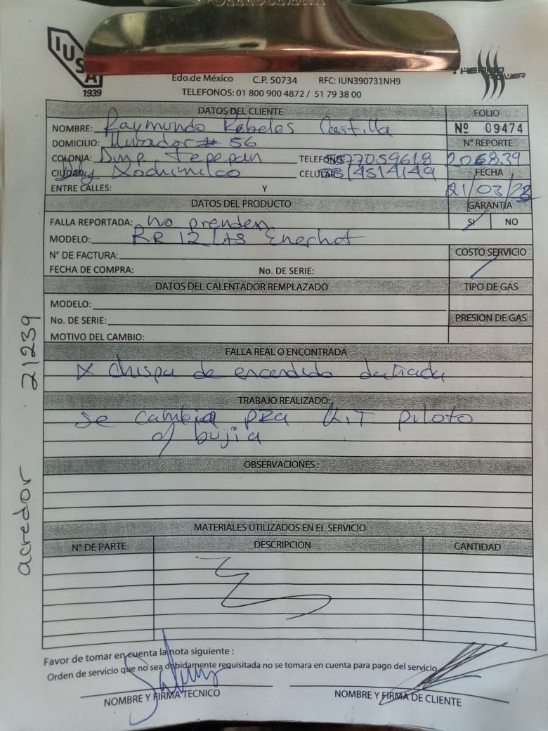 | Técnico | Alfredo Salinas Medina | Fecha Asistencia | 2023-03-21 12:00:00 | ||||||||||||||||
