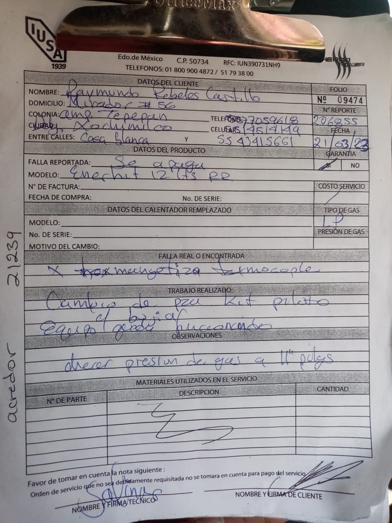 | Orden de Servicio | 206855 | Orden Interna Refacción | |||||||||||||||||