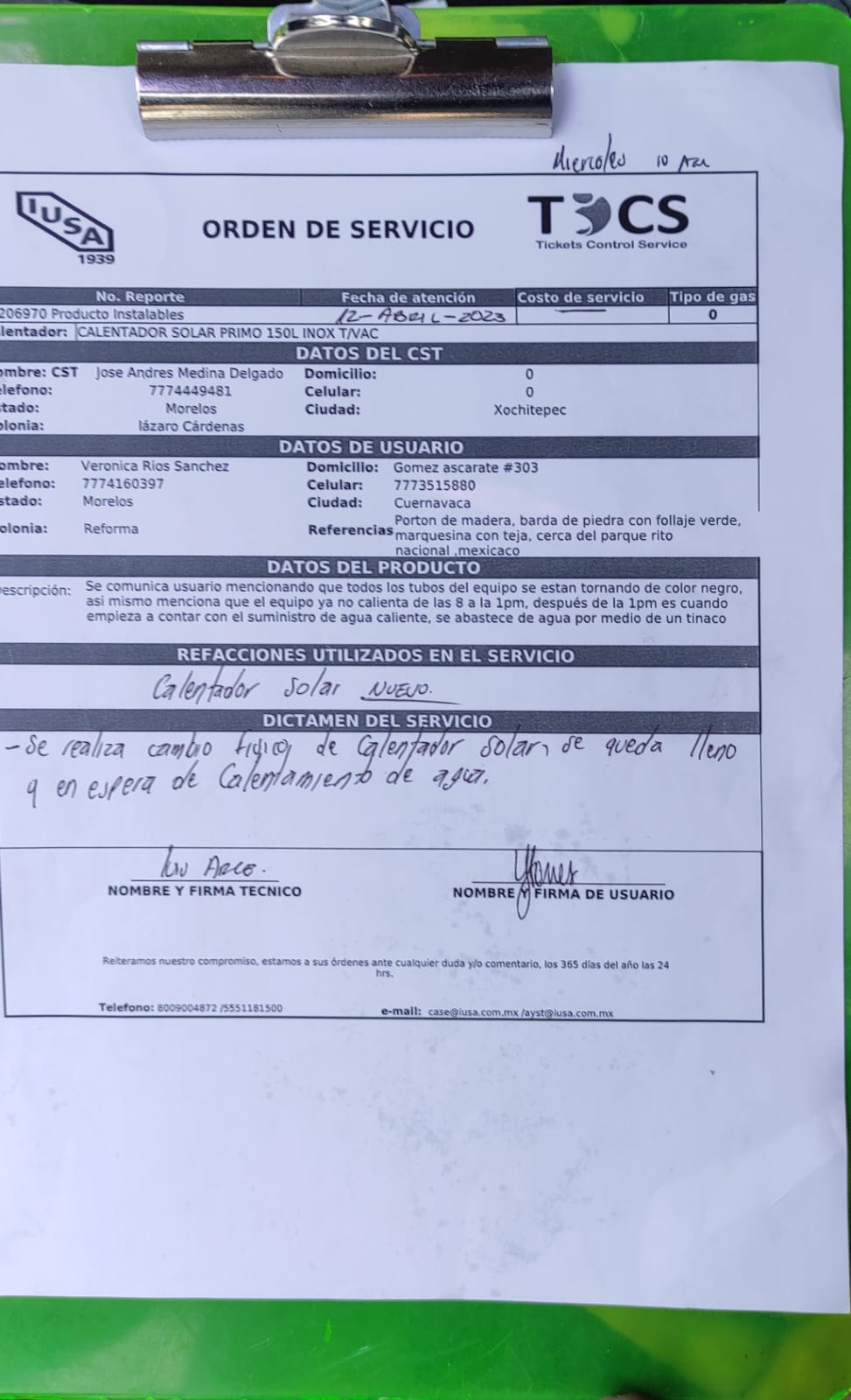 | Técnico | Jose Andres Medina Delgado | Fecha Asistencia | 2023-04-12 16:16:00 | ||||||||||||||||