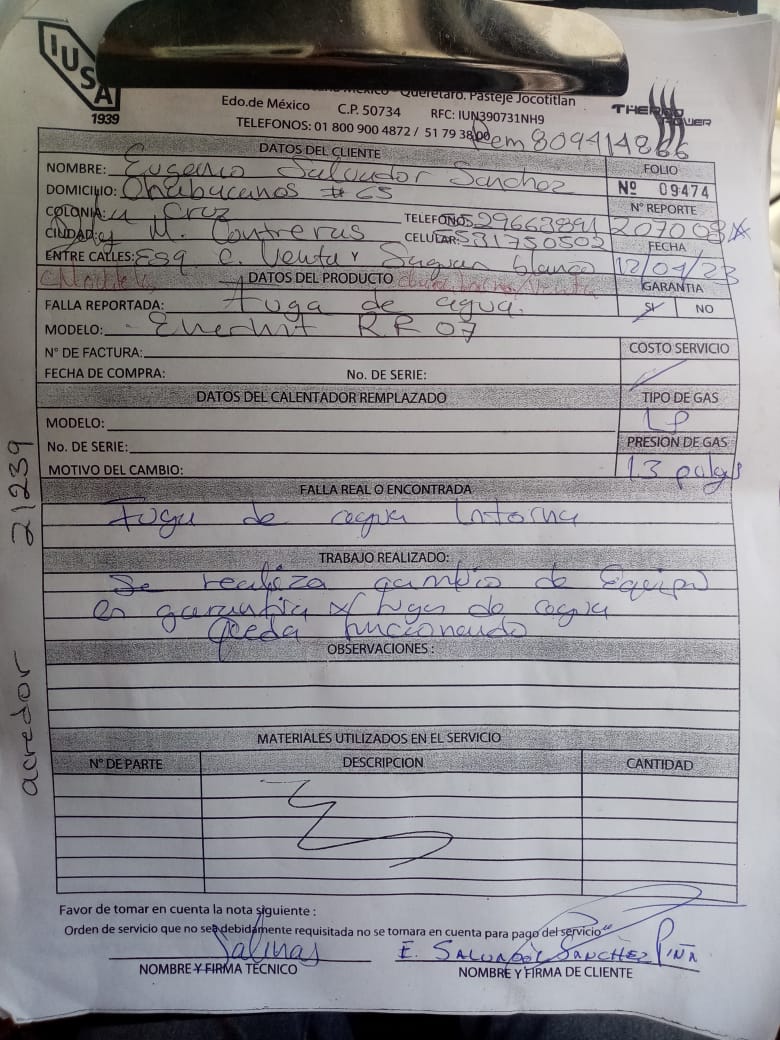| Técnico | Alfredo Salinas Medina | Fecha Asistencia | 2023-04-10 19:50:00 | ||||||||||||||||