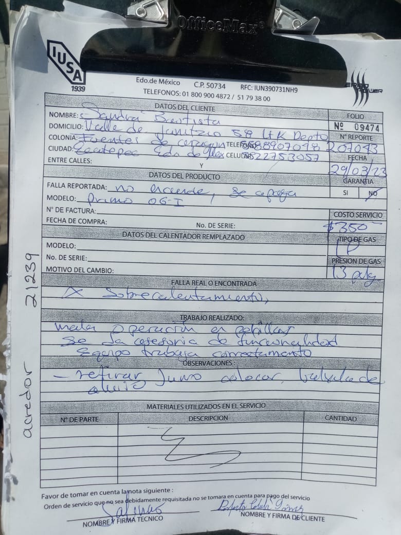 | Técnico | Alfredo Salinas Medina | Fecha Asistencia | 2023-03-29 20:10:00 | ||||||||||||||||