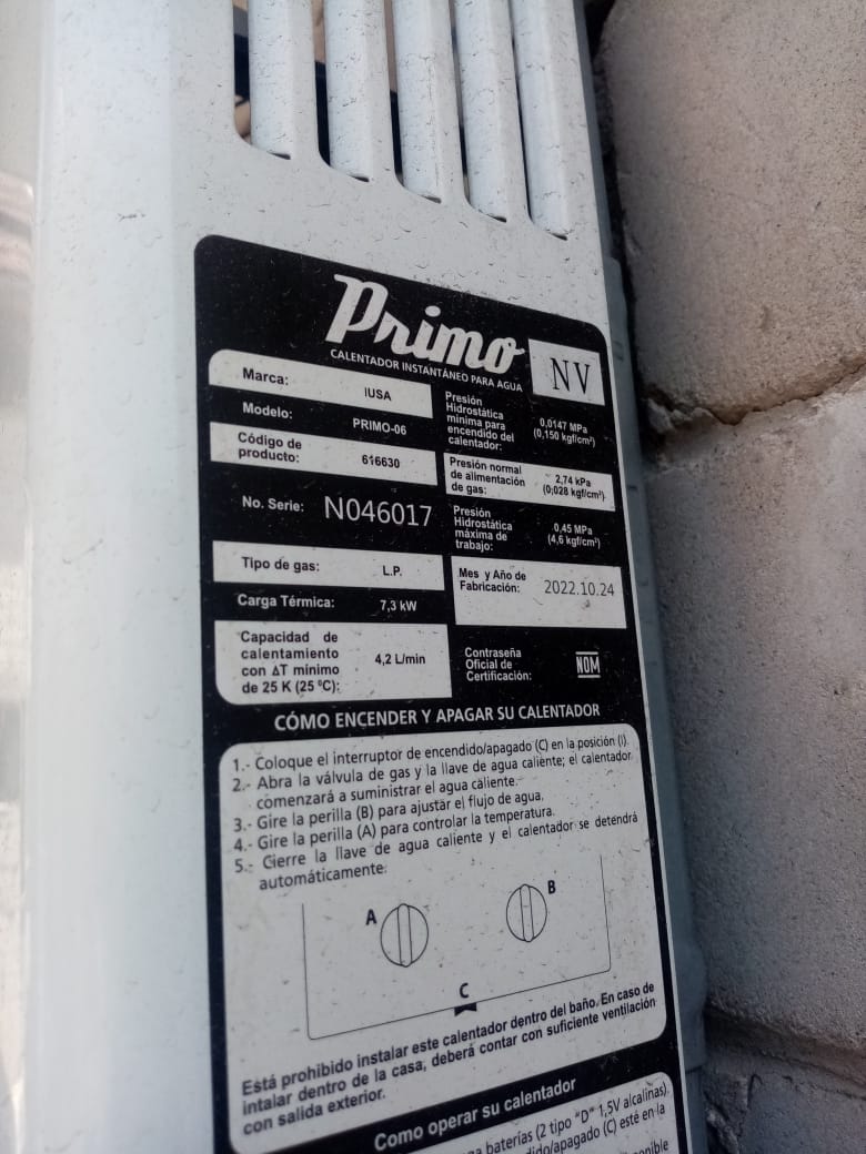 | Material | Calentador Instantáneo Primo | Tipo Producto | |
