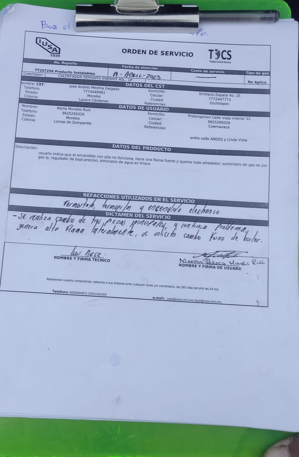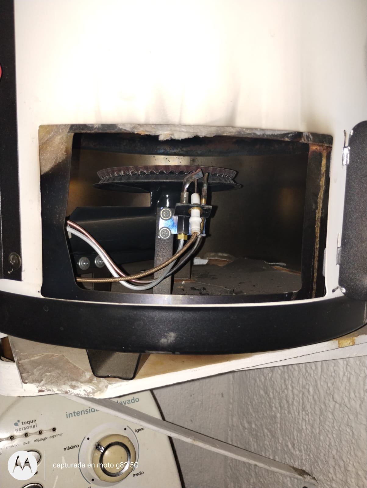 | usuario indica que el encendido con pila no funciona, tiene una flama fuerte y quema todo alrededor, suministro de gas es por gas lp, regulador de baja precion, siministro de agua es tinaco |