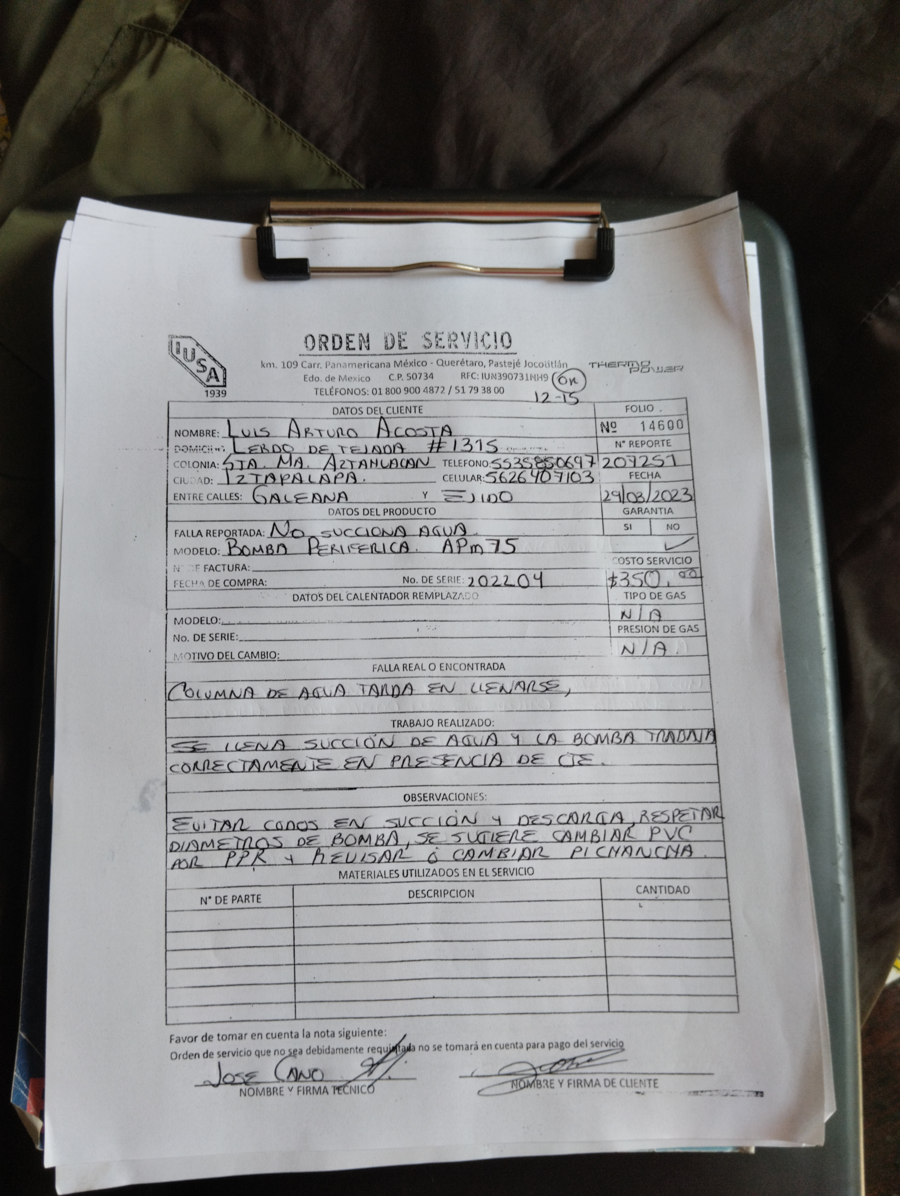 | Técnico | Jose Cano Sanchez | Fecha Asistencia | 2023-03-28 18:35:00 | ||||||||||||||||
