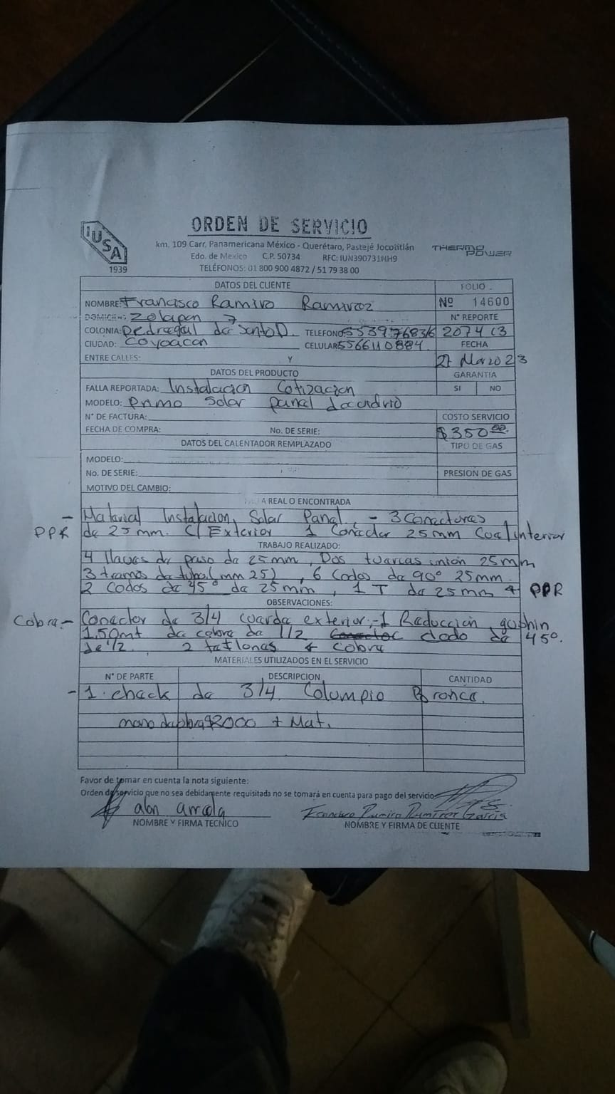 | Técnico | Jose Cano Sanchez | Fecha Asistencia | 2023-03-27 18:40:00 | ||||||||||||||||