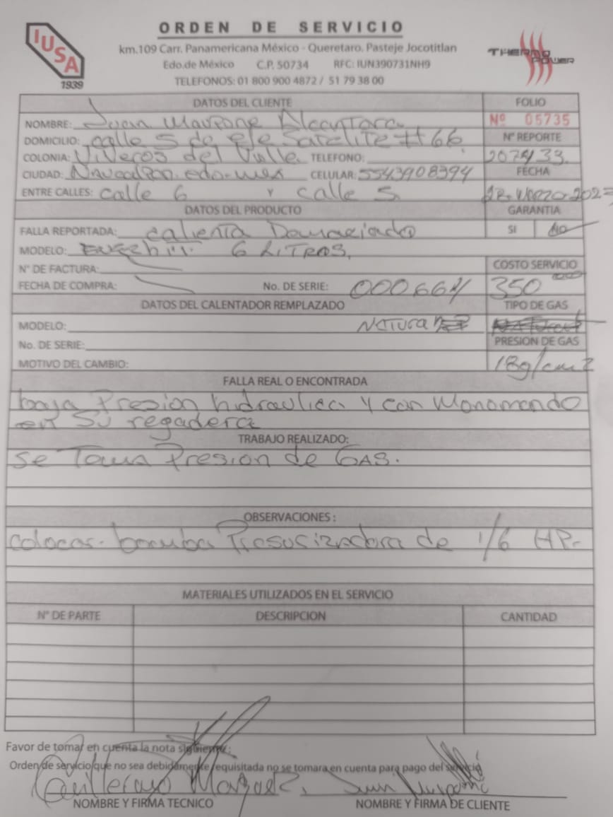| Orden de Servicio | Orden Interna Refacción | ||||||||||||||||||