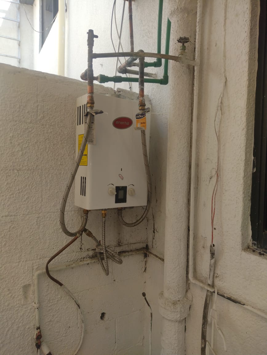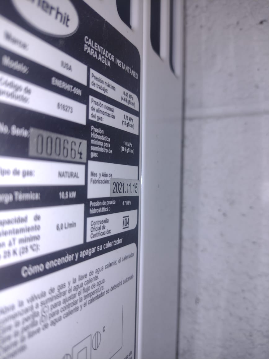 Usa gas natural, el equipo usa agua de tinaco. Lo compro hace un mes, no le ha dado mantenimiento |