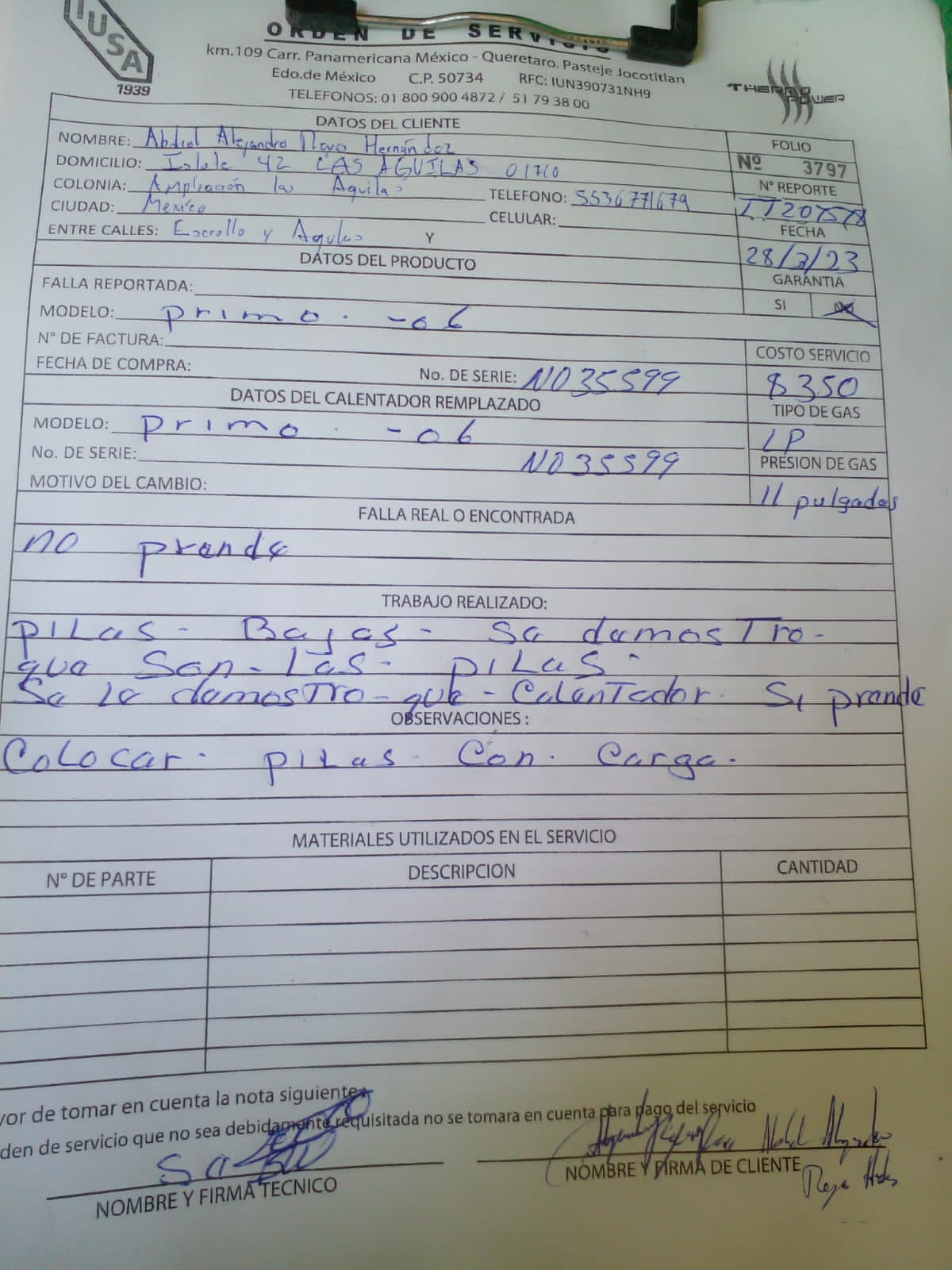 | Técnico | Alfredo Salinas Medina | Fecha Asistencia | 2023-03-28 17:27:00 | ||||||||||||||||