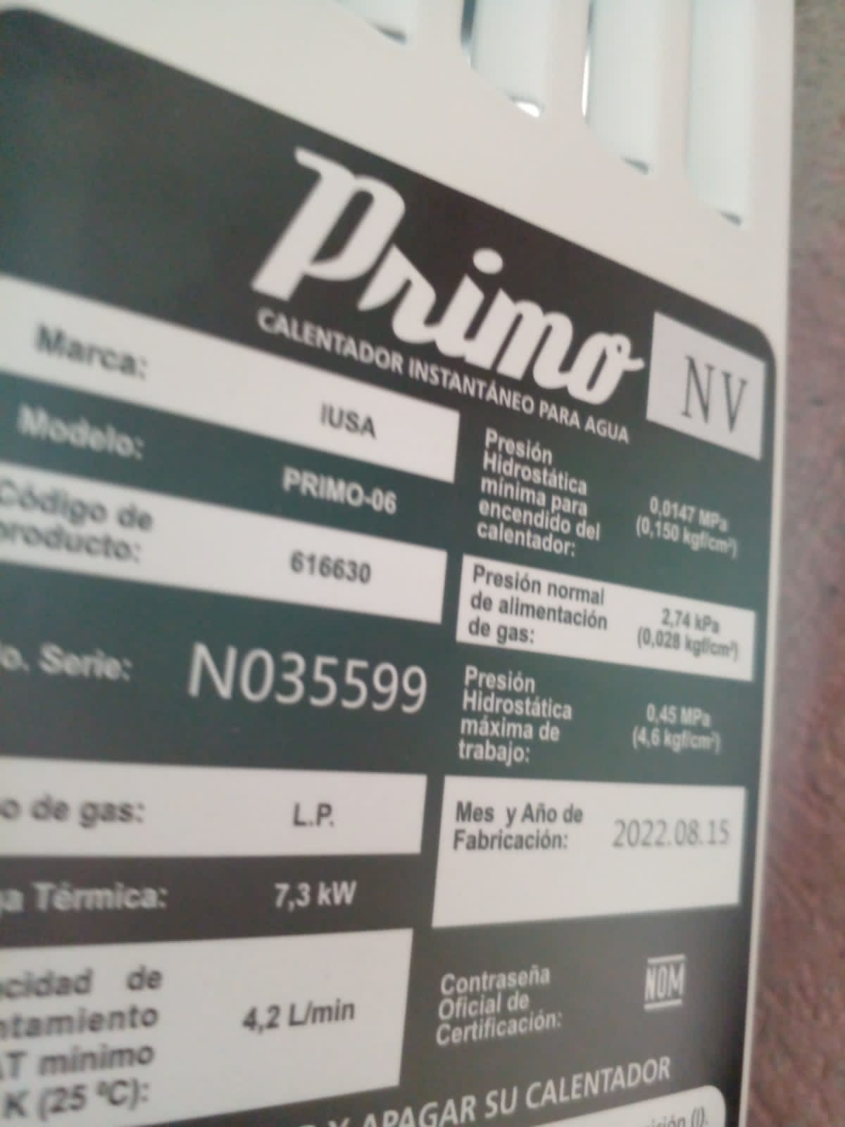 | Material | CALENTADOR INSTA IUSA ENERHIT 06L LP | Tipo Producto | |