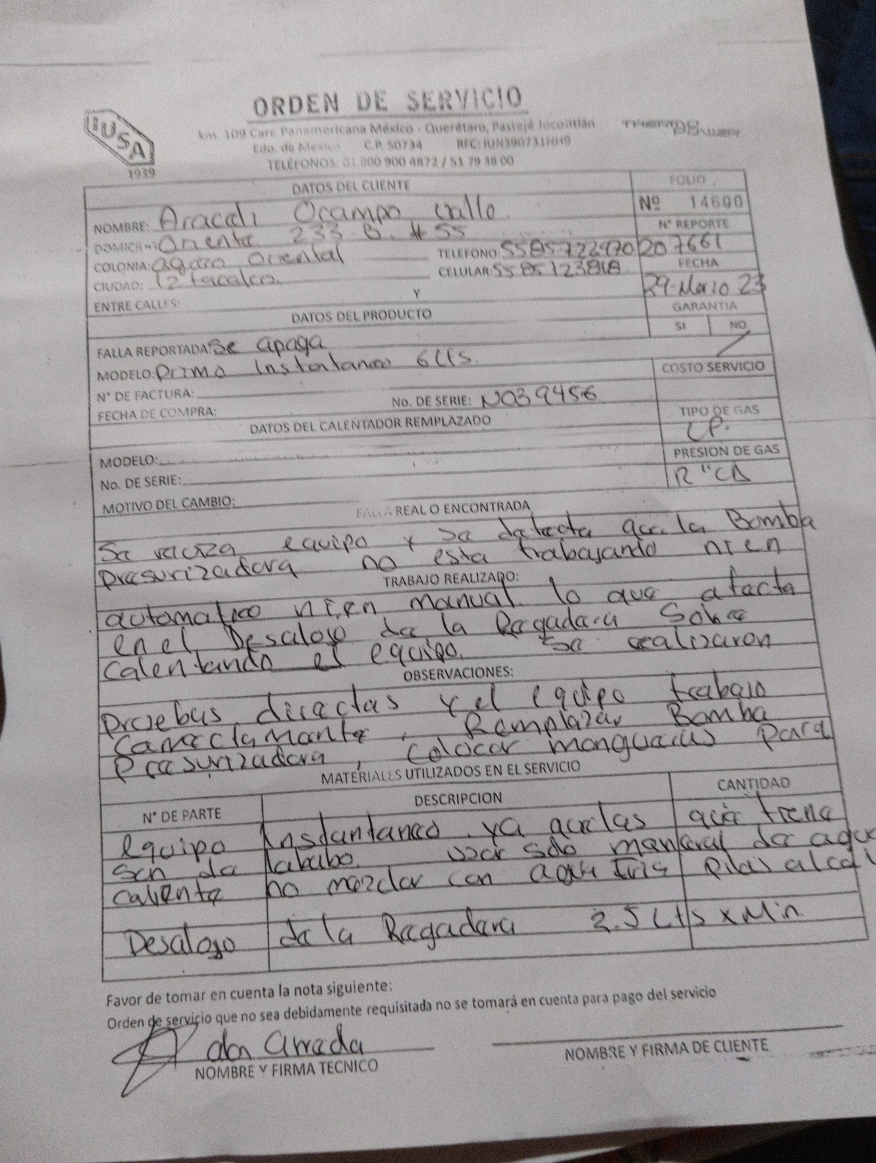 | Orden de Servicio | 207661 | Orden Interna Refacción | |||||||||||||||||