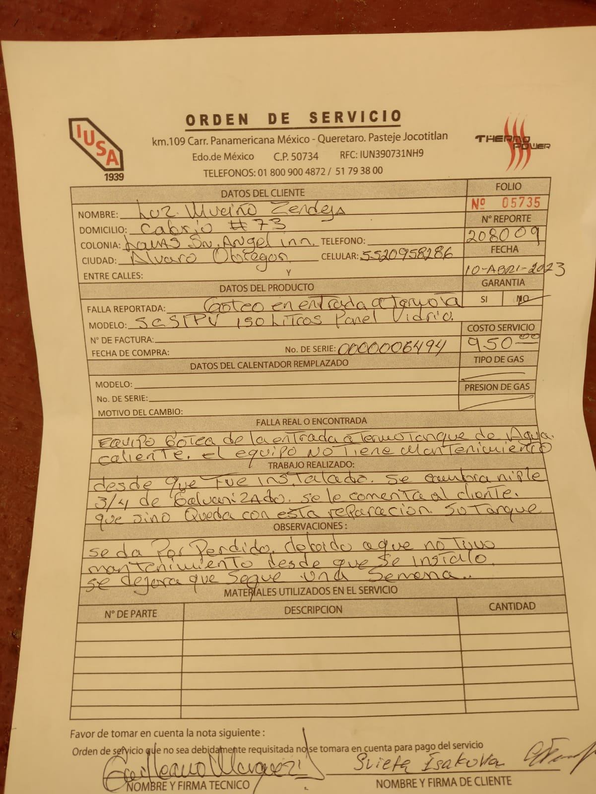 Usa agua de tinaco, le dio mantenimiento por ultima vez al equipo hace 2 años. Valvula de alivio |