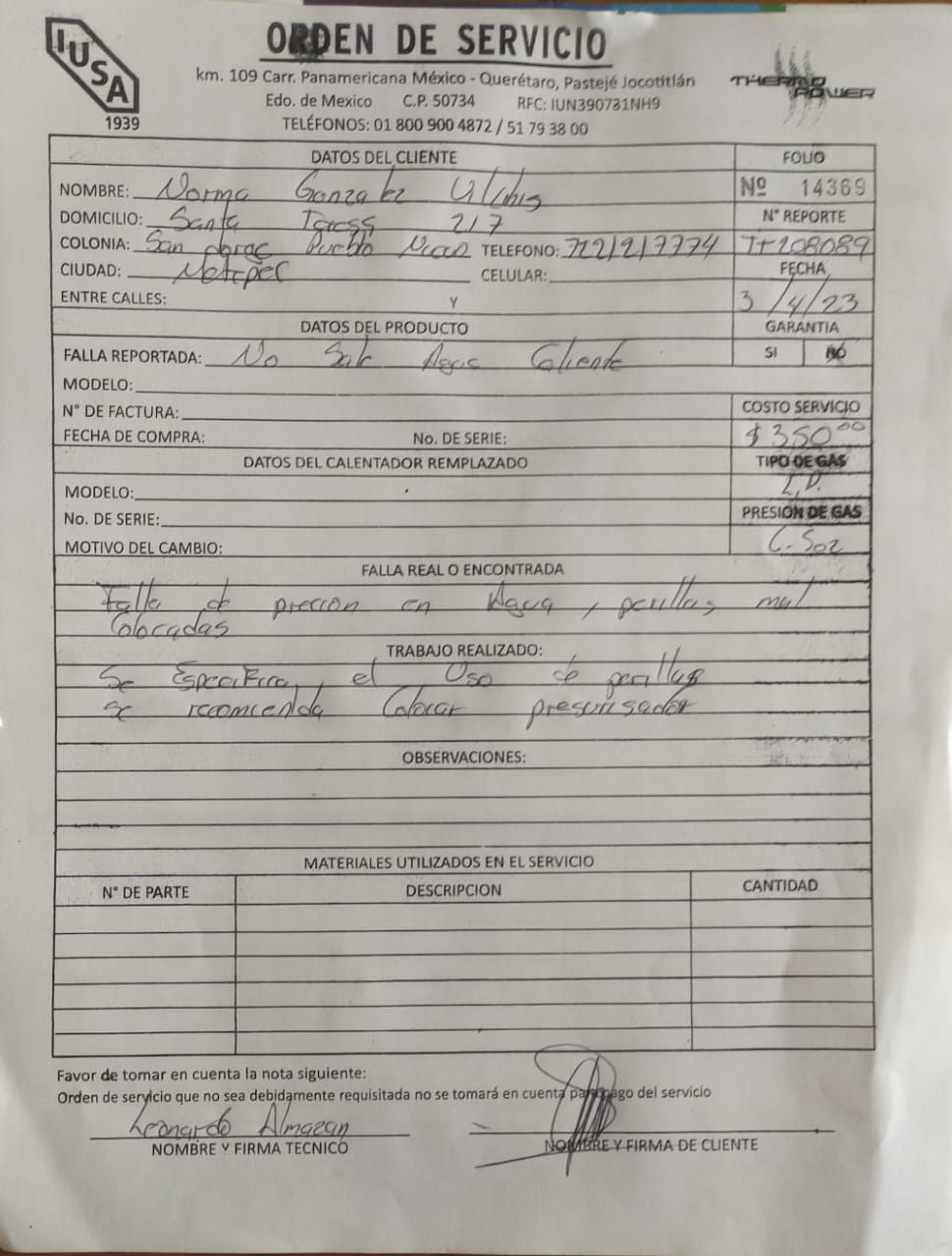 | Orden de Servicio | Orden Interna Refacción | ||||||||||||||||||