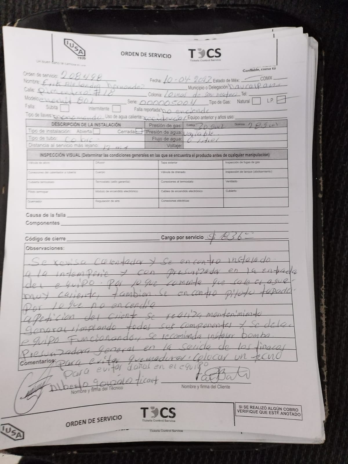 | Técnico | Alberto Gonzalez | Fecha Asistencia | 2023-04-10 17:00:00 | ||||||||||||||||