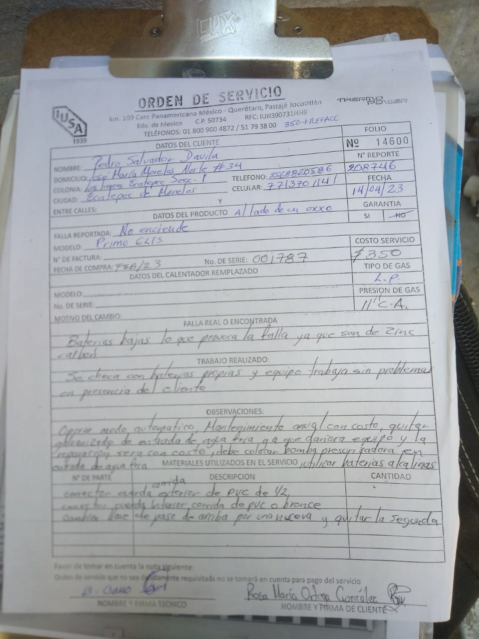 | Técnico | Jose Cano Sanchez | Fecha Asistencia | 2023-04-14 10:34:00 | ||||||||||||||||