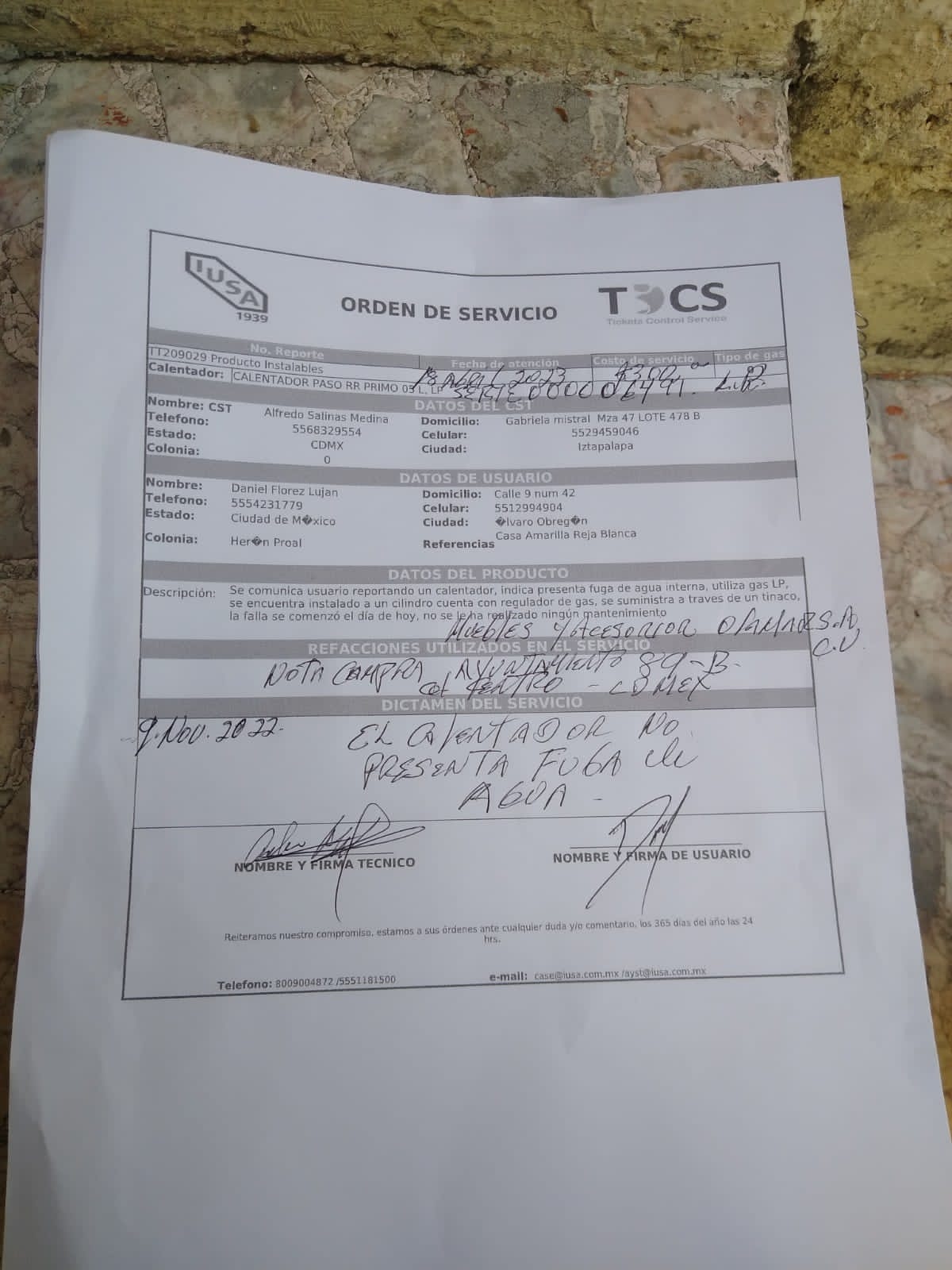 | Técnico | Alfredo Salinas Medina | Fecha Asistencia | 2023-04-18 17:00:00 | ||||||||||||||||