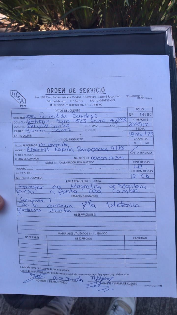 | Refacciones Utilizadas | SI | Tipo de Refacción | CONJ.TERMOPAR-PILOTO PARA ENC.-ELEC. | ||||||||||||||||