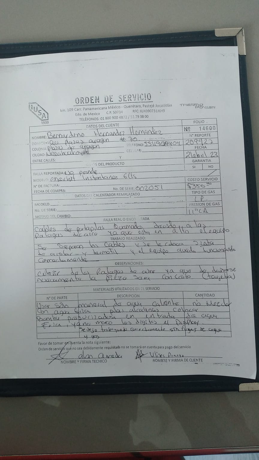 | Orden de Servicio | 209427 | Orden Interna Refacción | |||||||||||||||||