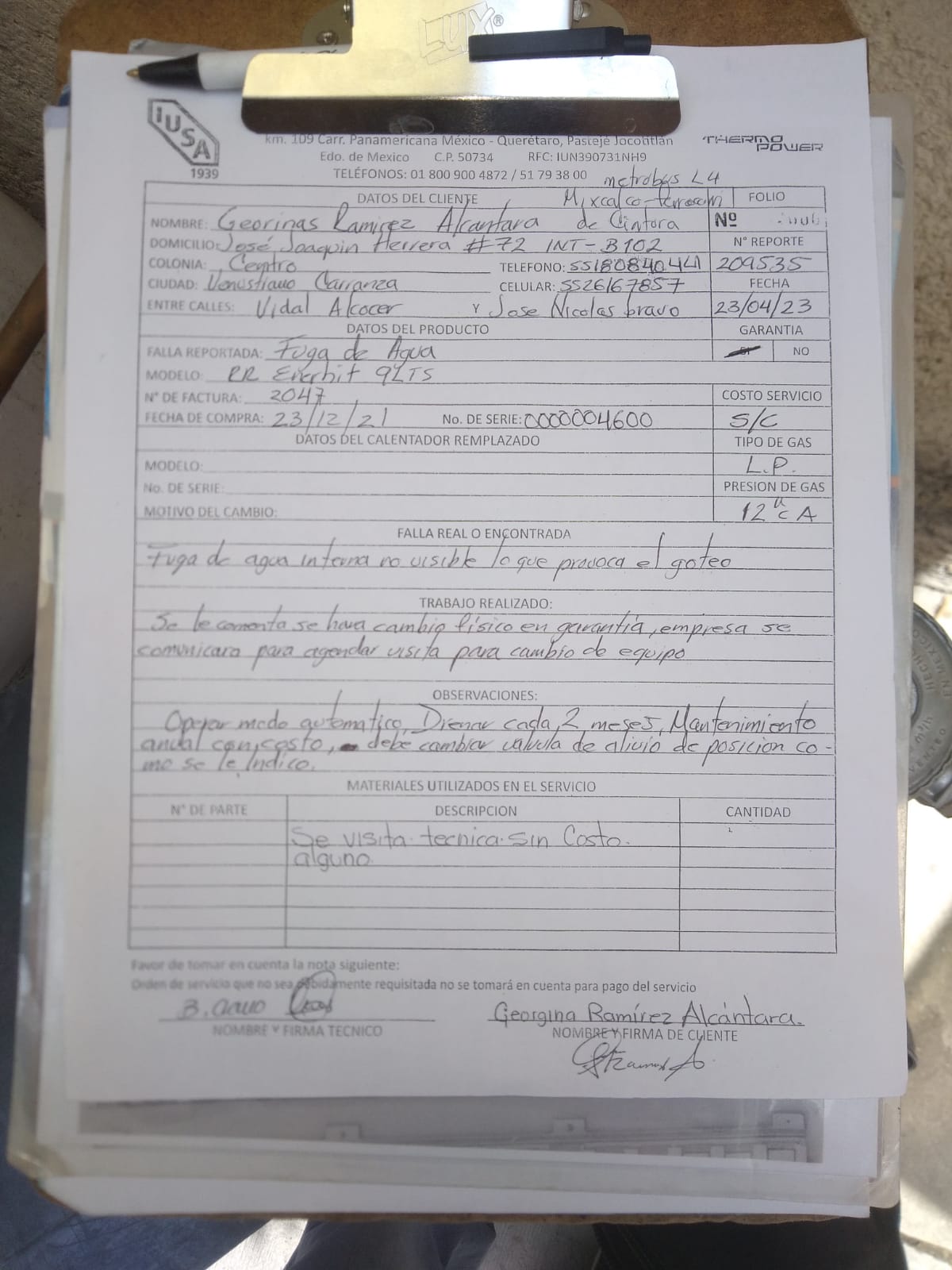 | Técnico | Jose Cano Sanchez | Fecha Asistencia | 2023-05-15 12:30:00 | ||||||||||||||||
