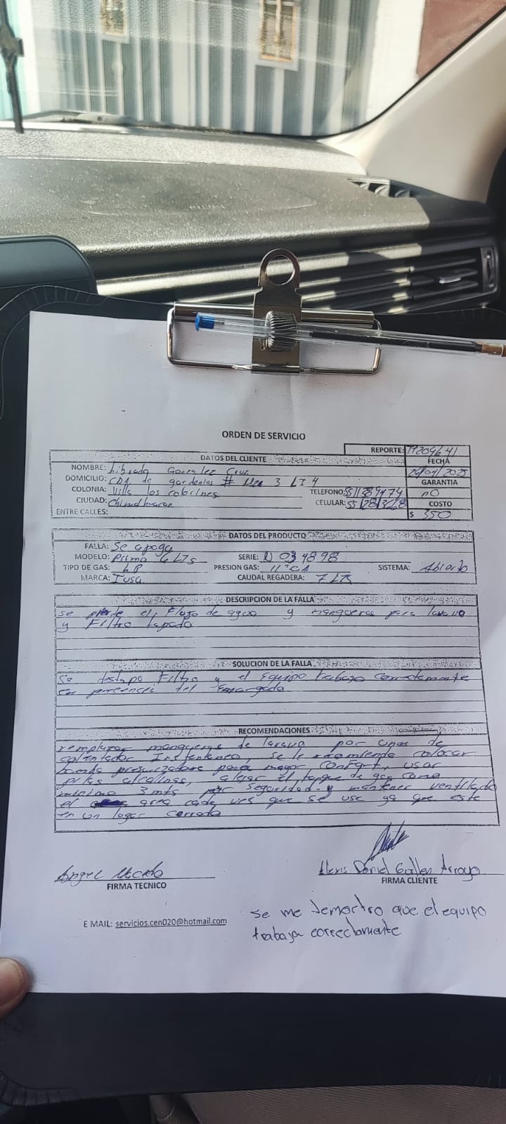 | Técnico | Jose Cano Sanchez | Fecha Asistencia | 2023-04-26 18:20:00 | ||||||||||||||||
