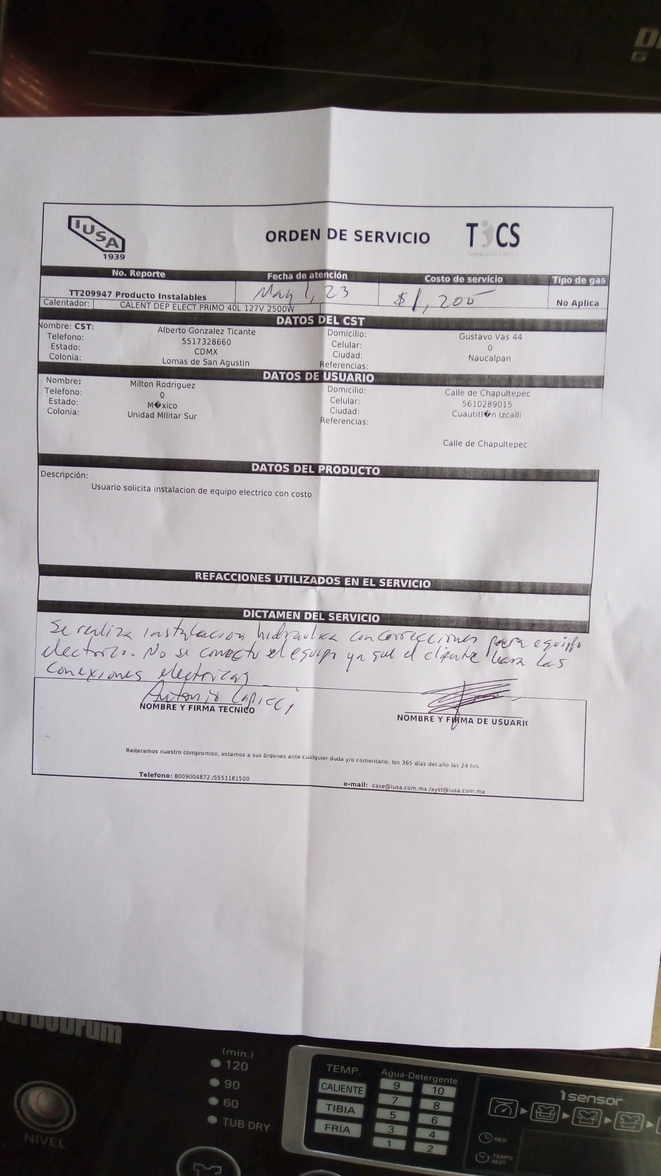 | Técnico | Alberto Gonzalez | Fecha Asistencia | 2023-05-01 14:30:00 | ||||||||||||||||