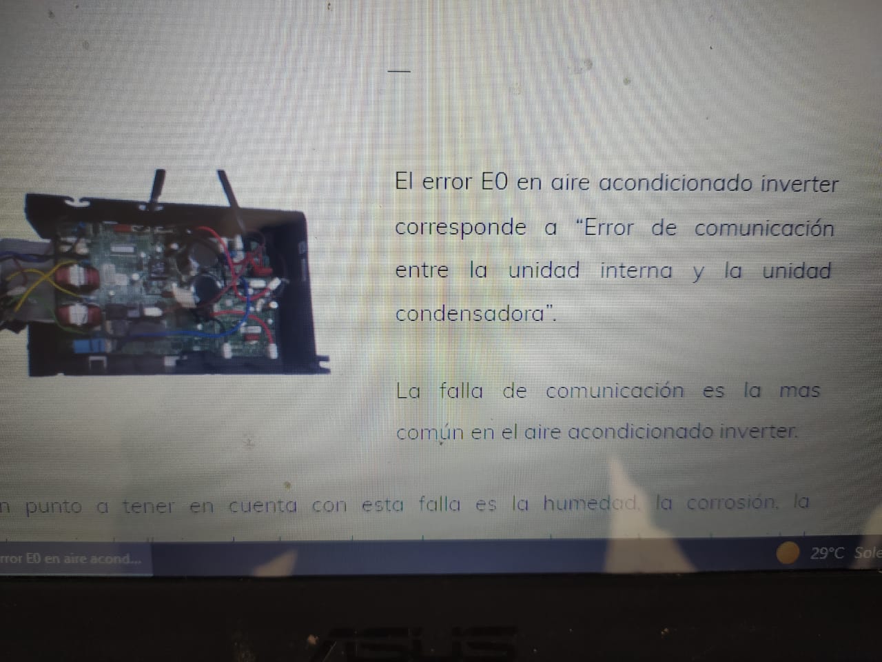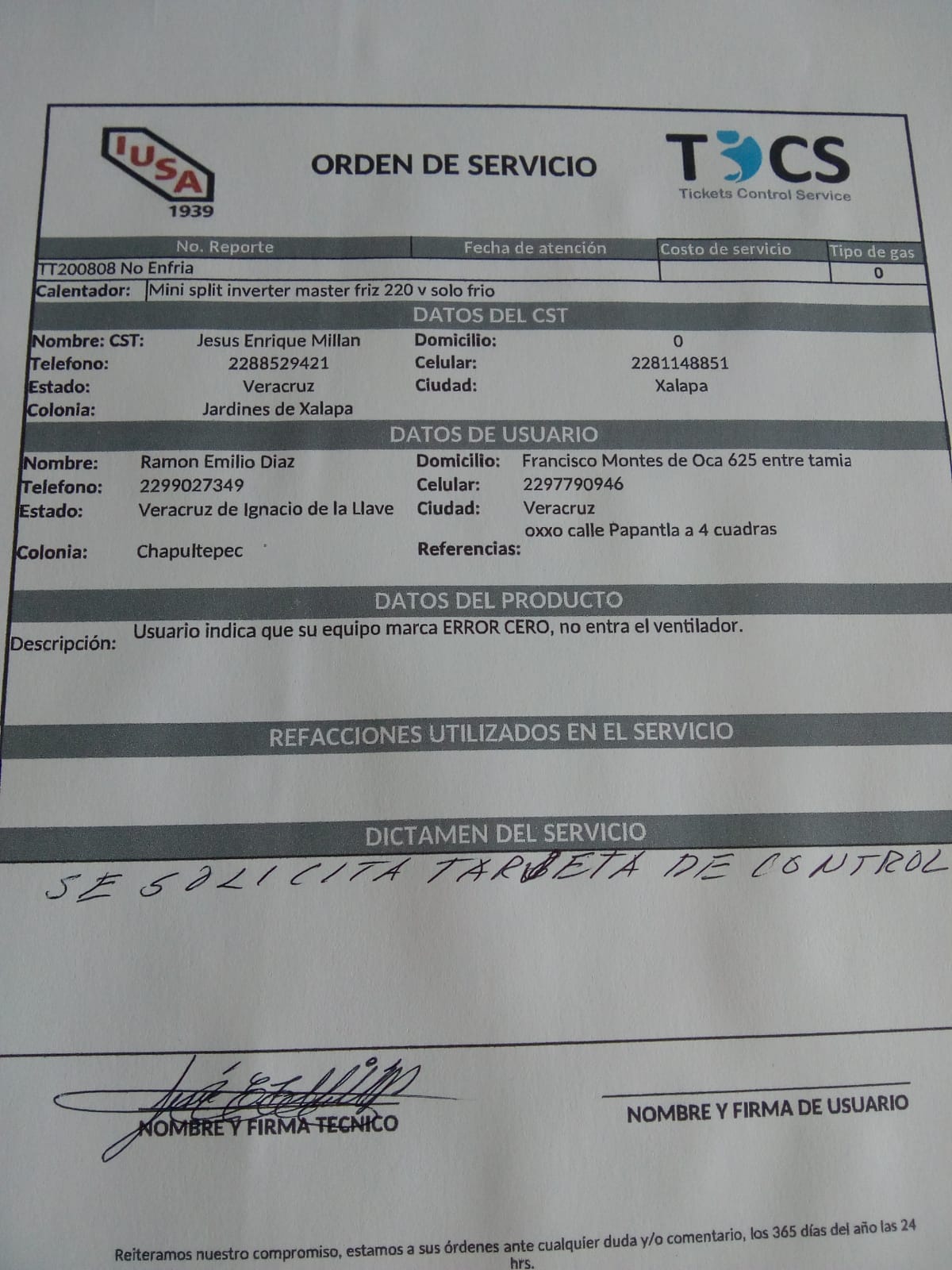 | Usuario indica que su equipo marca ERROR CERO, no entra el ventilador.