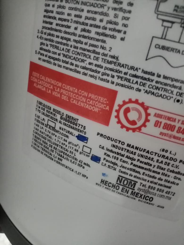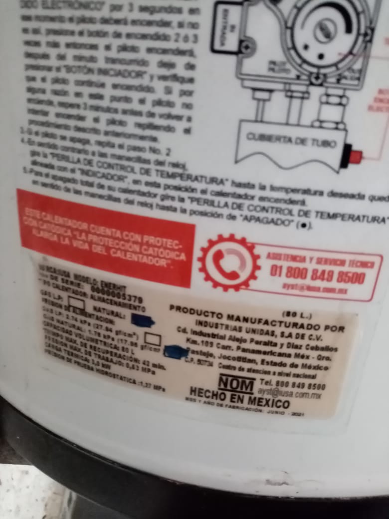 Cuando se presento el problema:la semana pasada ¿Se realizo Mantenimiento?: Solo drenado Tipo de gas: Natural |