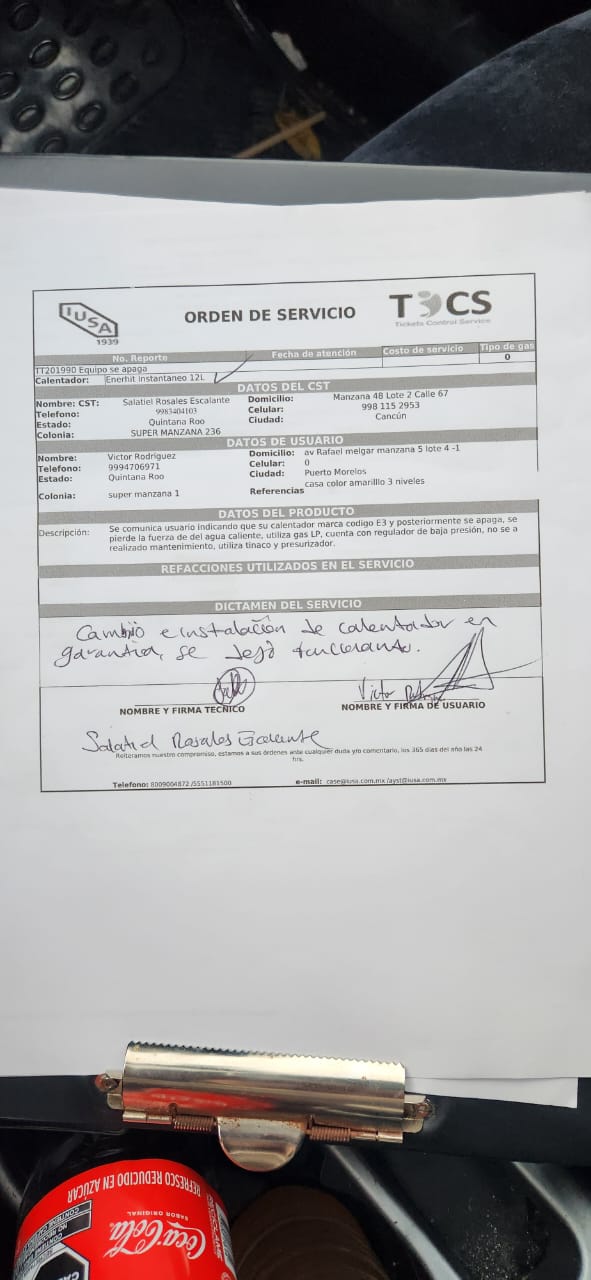 | Se comunica usuario indicando que su calentador marca codigo E3 y posteriormente se apaga, se pierde la fuerza de del agua caliente, utiliza gas LP, cuenta con regulador de baja presión, no se a realizado mantenimiento, utiliza tinaco y presurizador. |