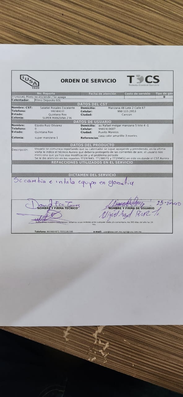| Técnico | Salatiel Rosales Escalante | Fecha Asistencia | 2023-01-25 10:00:00 | ||||||||||||||||