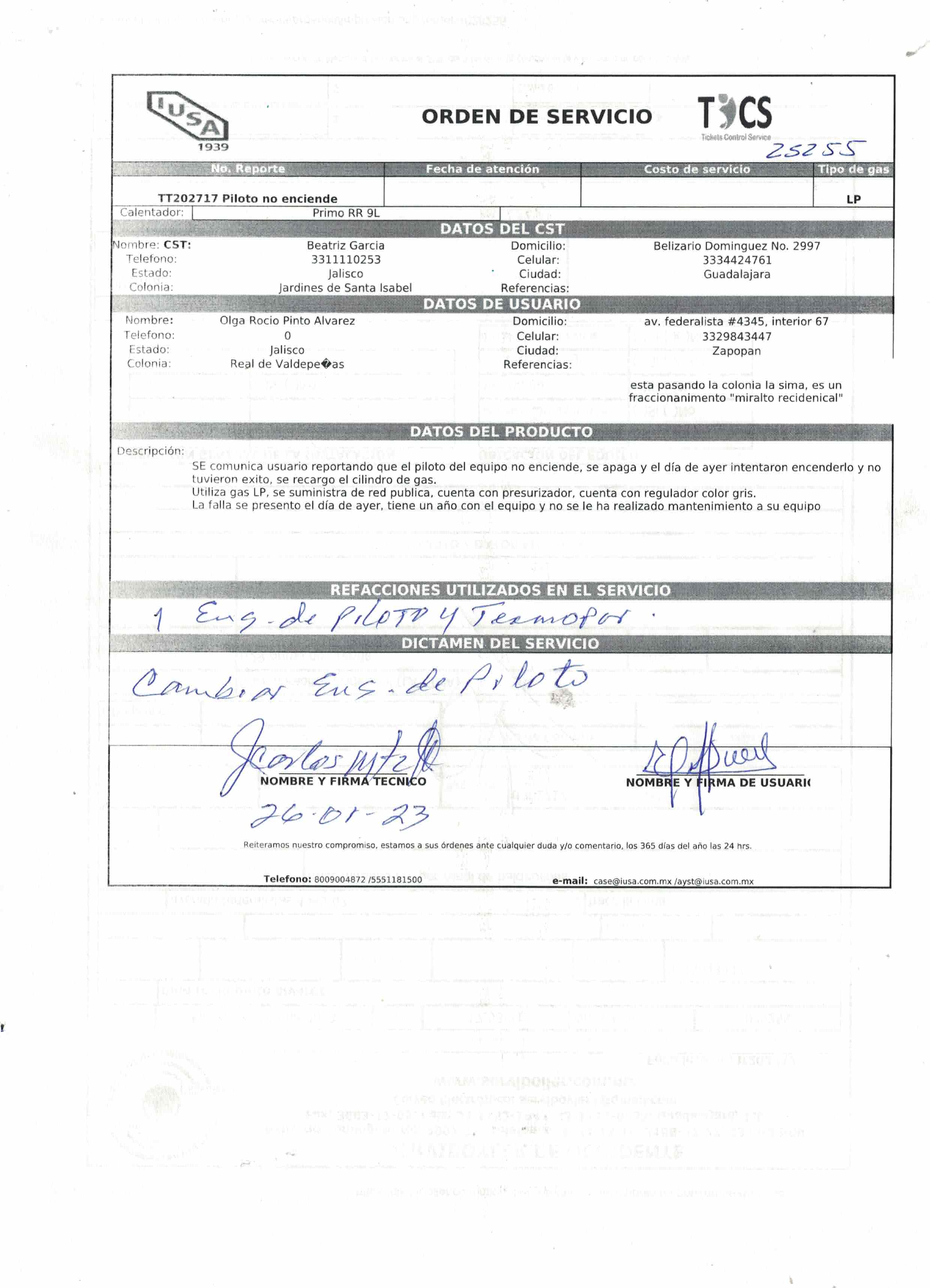 | Refacciones Utilizadas | SI | Tipo de Refacción | CONJ.TERMOPAR-PILOTO PARA ENC.-ELEC. | ||||||||||||||||