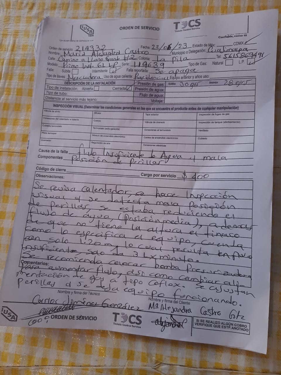 | Técnico | Alberto Gonzalez | Fecha Asistencia | 2023-06-24 08:00:00 | ||||||||||||||||