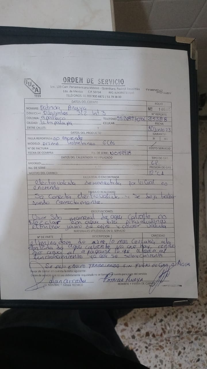 | Usuaria reporta que estan instalado su calentador y este no enciende. Solo suena como que va a dar la chispa pero no enciende.