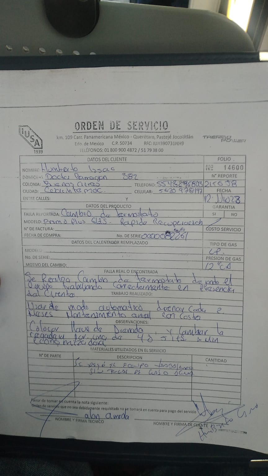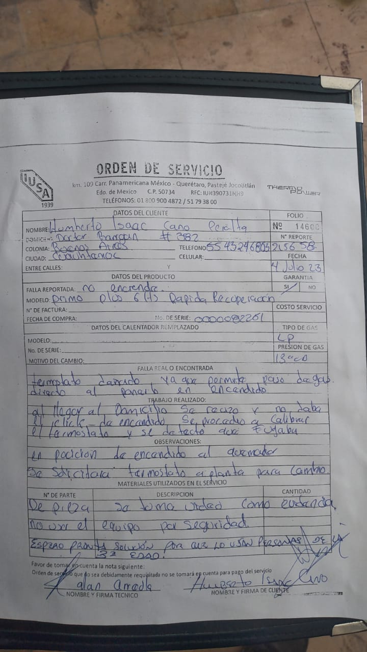 | Orden Interna | 58011548 | Falla Real | Termostato dañado | ||||||||||||||||