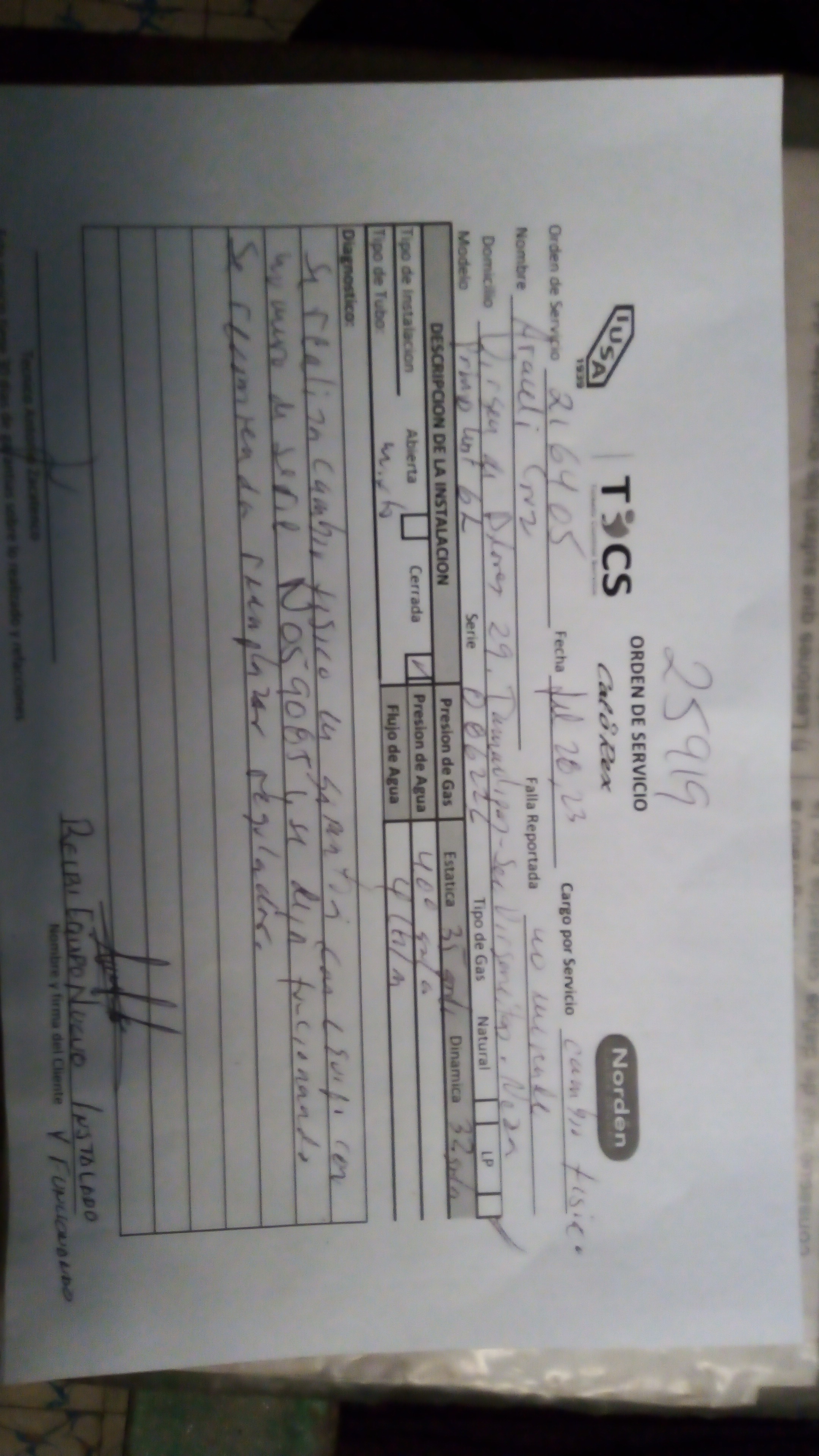 | Refacciones Utilizadas | NO | Tipo de Refacción | N/A | ||||||||||||||||