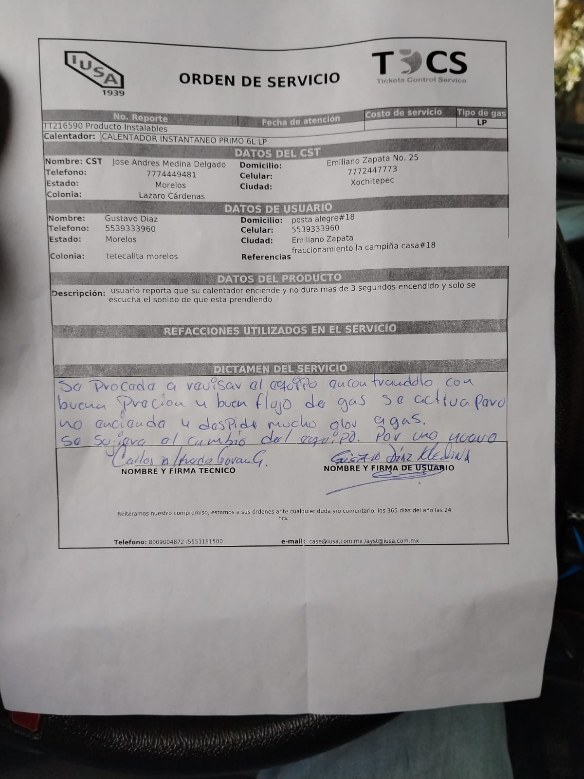 | Orden de Servicio | 216590 | Orden Interna Refacción | 616630 | ||||||||||||||||