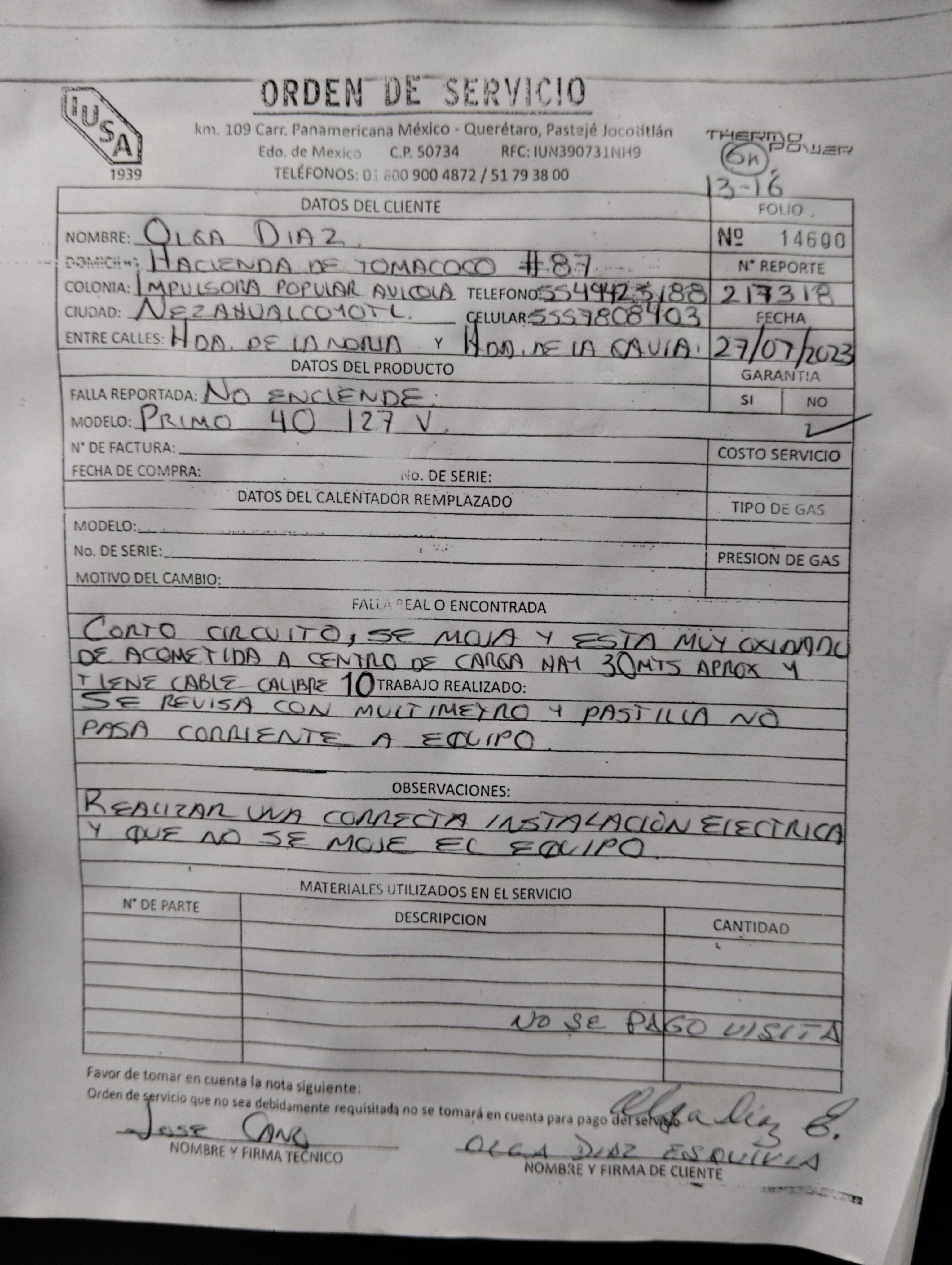 | Orden de Servicio | 217318 | Orden Interna Refacción | |||||||||||||||||
