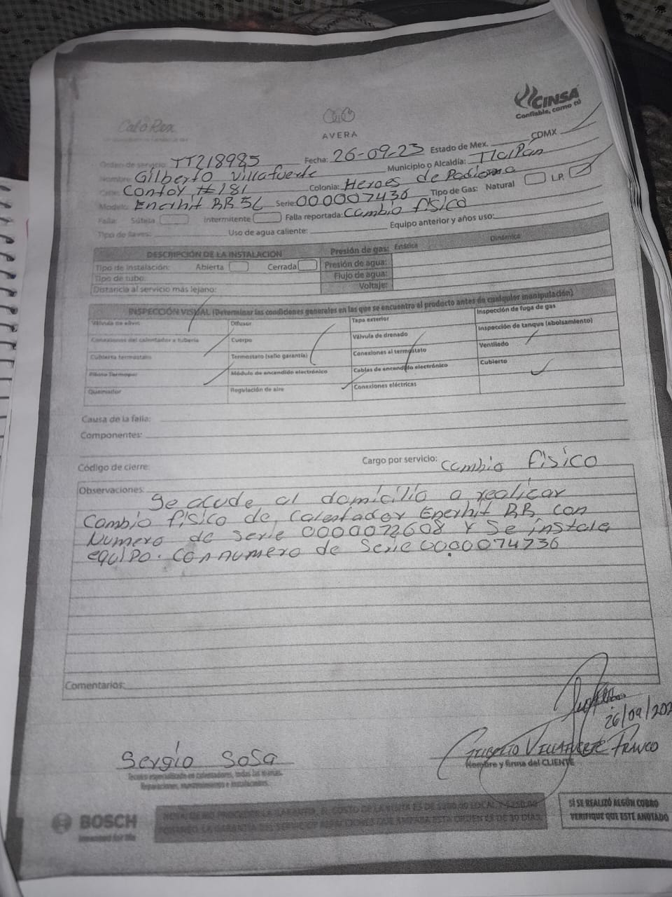 | Técnico | Alberto Gonzalez | Fecha Asistencia | 2023-09-26 17:30:00 | ||||||||||||||||