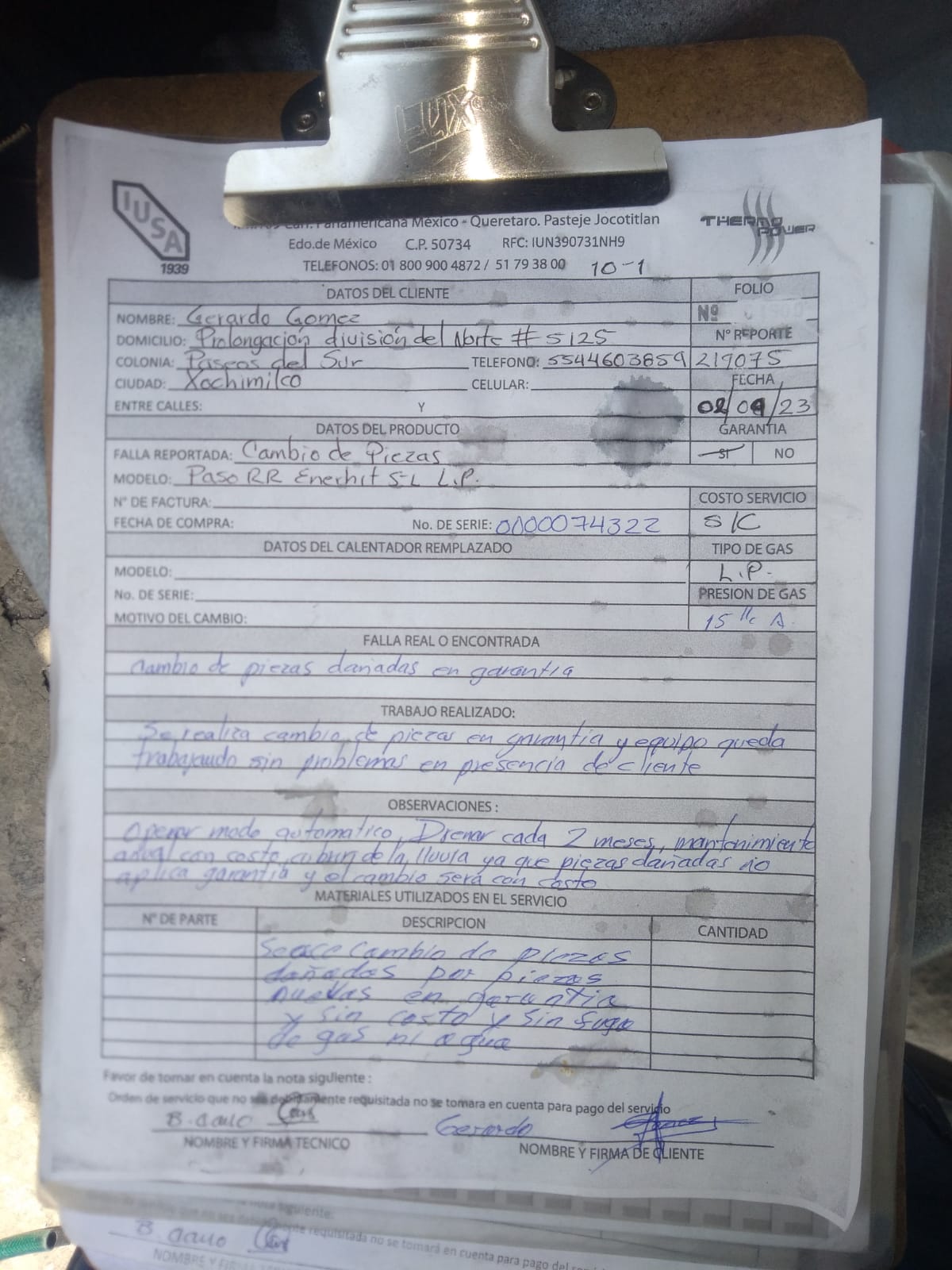 | Orden Interna | 58011888 | Falla Real | El termostato no funciona | ||||||||||||||||