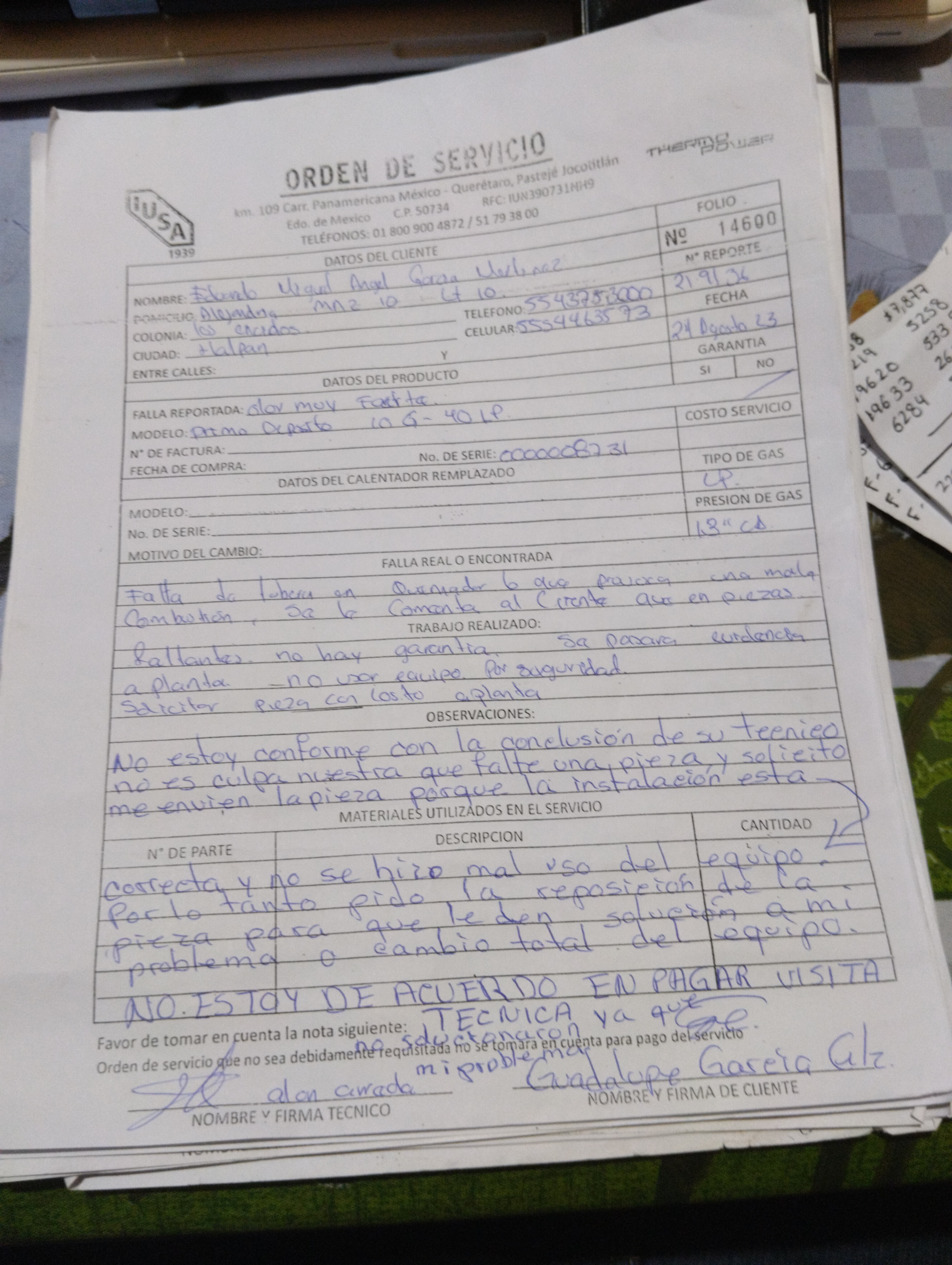 | Técnico | Jose Cano Sanchez | Fecha Asistencia | 2023-09-06 19:00:00 | ||||||||||||||||
