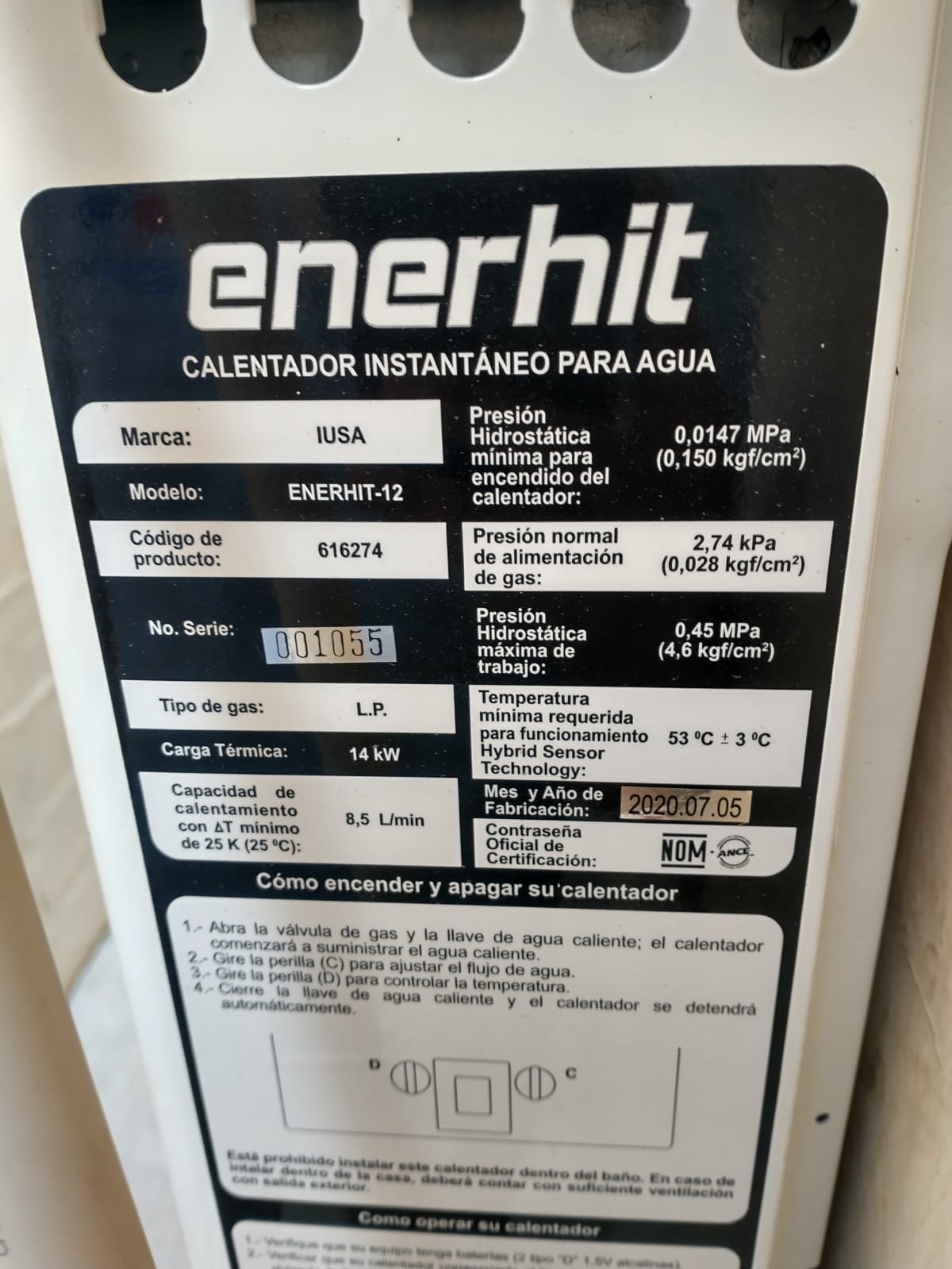 | Material | CALENTADOR INSTA IUSA ENERHIT 12L LP | Tipo Producto | |