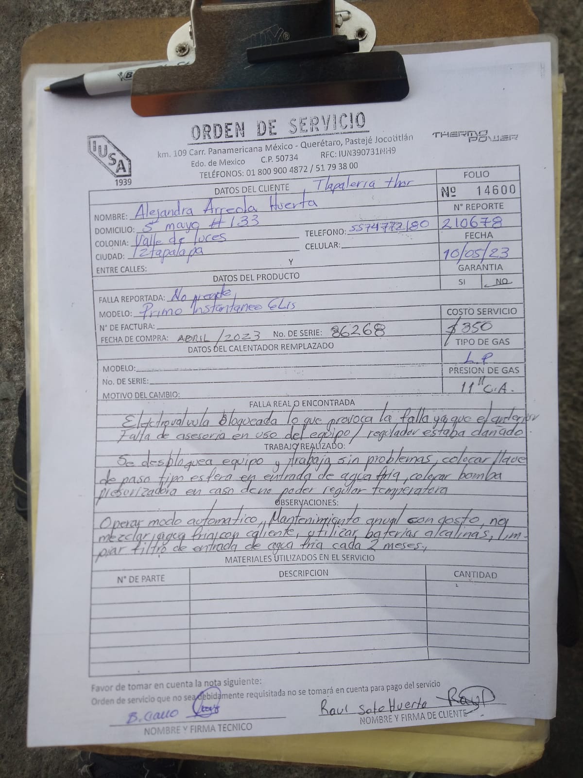 | Técnico | Jose Cano Sanchez | Fecha Asistencia | 2023-05-10 00:14:00 | ||||||||||||||||