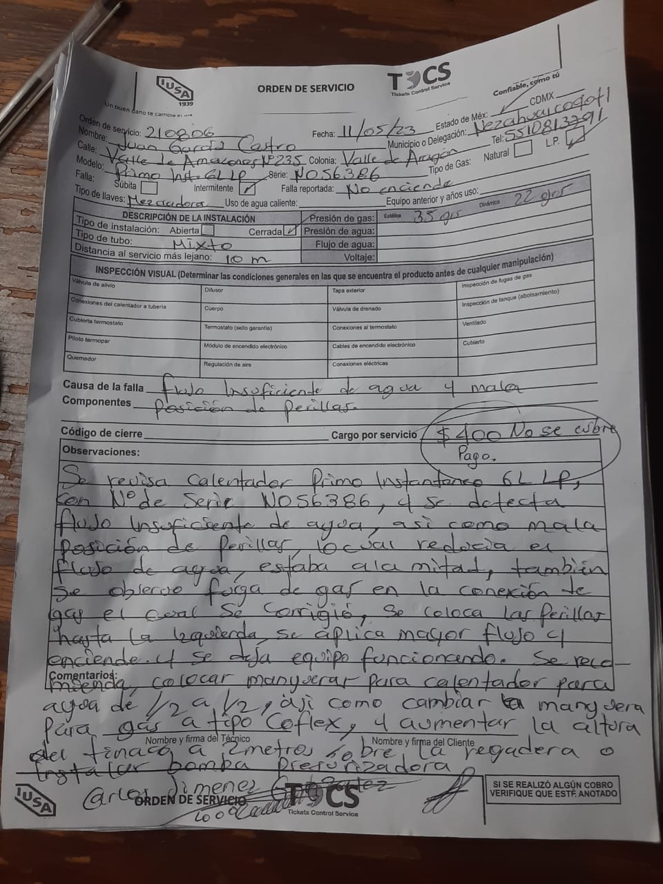 | Técnico | Alberto Gonzalez | Fecha Asistencia | 2023-05-11 17:00:00 | ||||||||||||||||